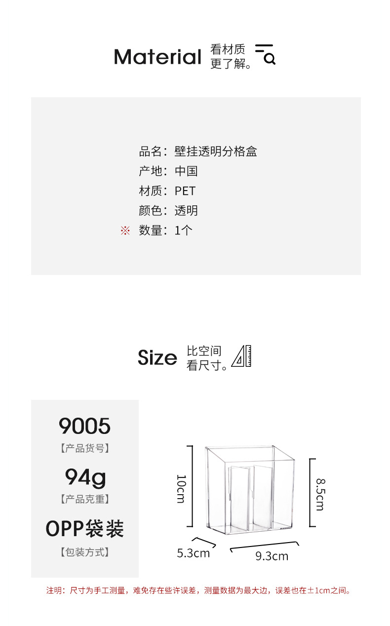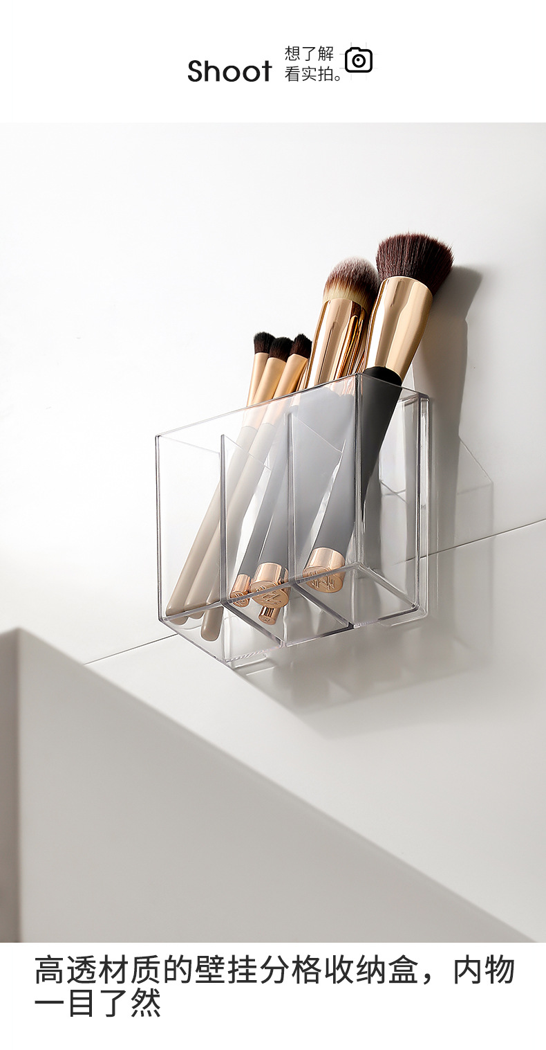 壁掛け仕切り収納ケース浴室穴なし口紅眉筆収納ケースpet透明分格収納ケース新型