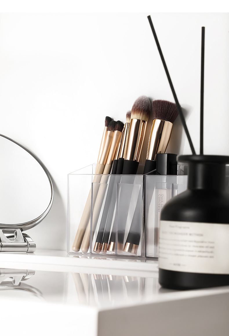 口红收纳盒3格装 化妆刷桶眉笔眼影透明盒子 万件现货48小时发货