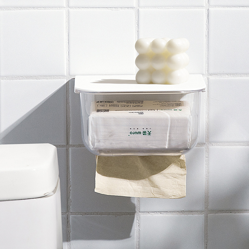 収納ボックス、フェイスタオル用、穴あけ不要、防水、トイレペーパーホルダー、透明、壁掛け、トイレペーパーボックス、釘不要