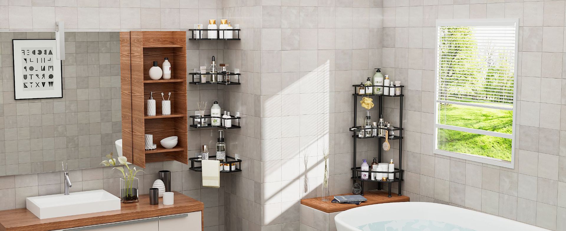 浴室炭素鋼収納ラック浴室洗面化粧品収納ボックス洗面台三脚コーナーラックカウンタートップ三脚