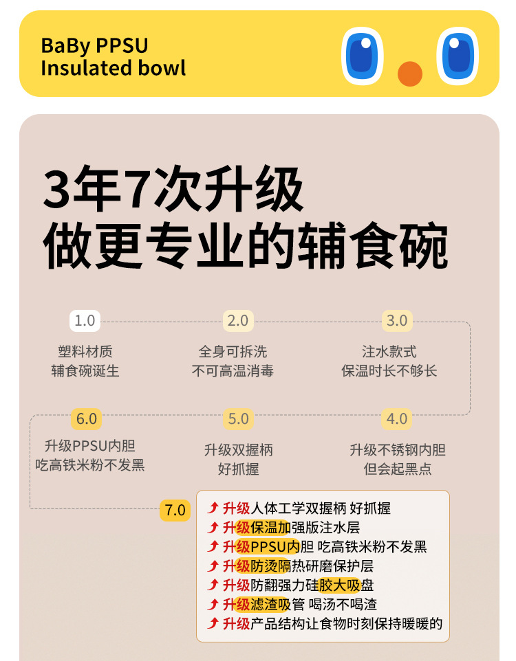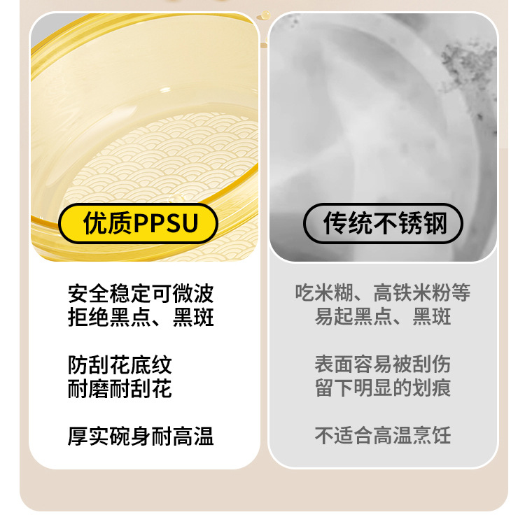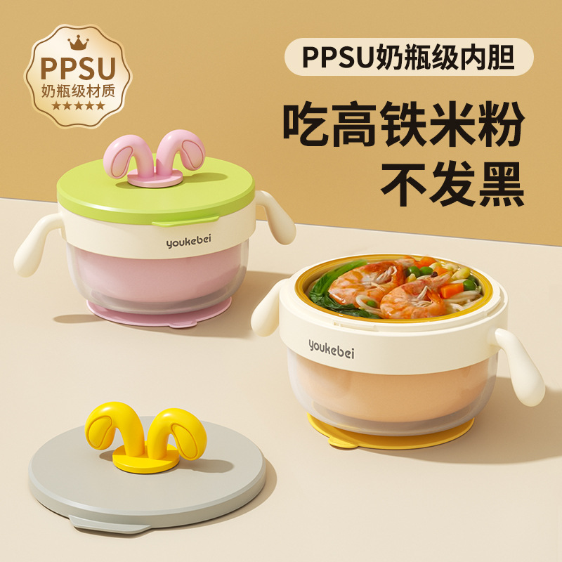 PPSU赤ちゃんの補助食碗の赤ちゃんの食事専用のステンレス製の転倒防止碗の子供の食器の注水保温碗