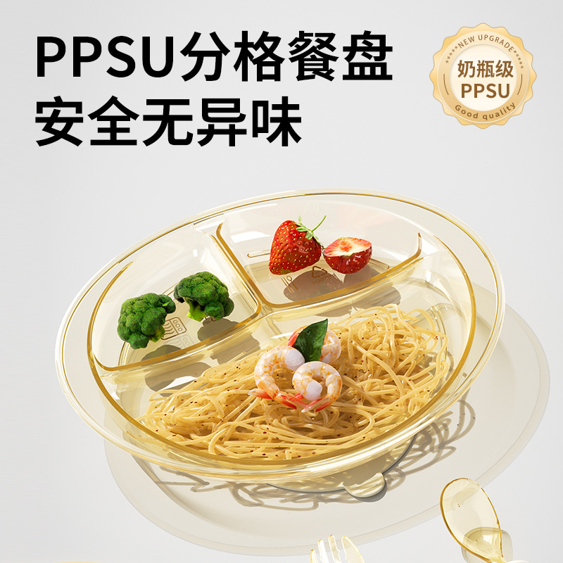 子供用PPSU仕切り付きディナープレート、赤ちゃんが自分で食べることを学ぶための吸盤付き食器、メーカー在庫卸売
