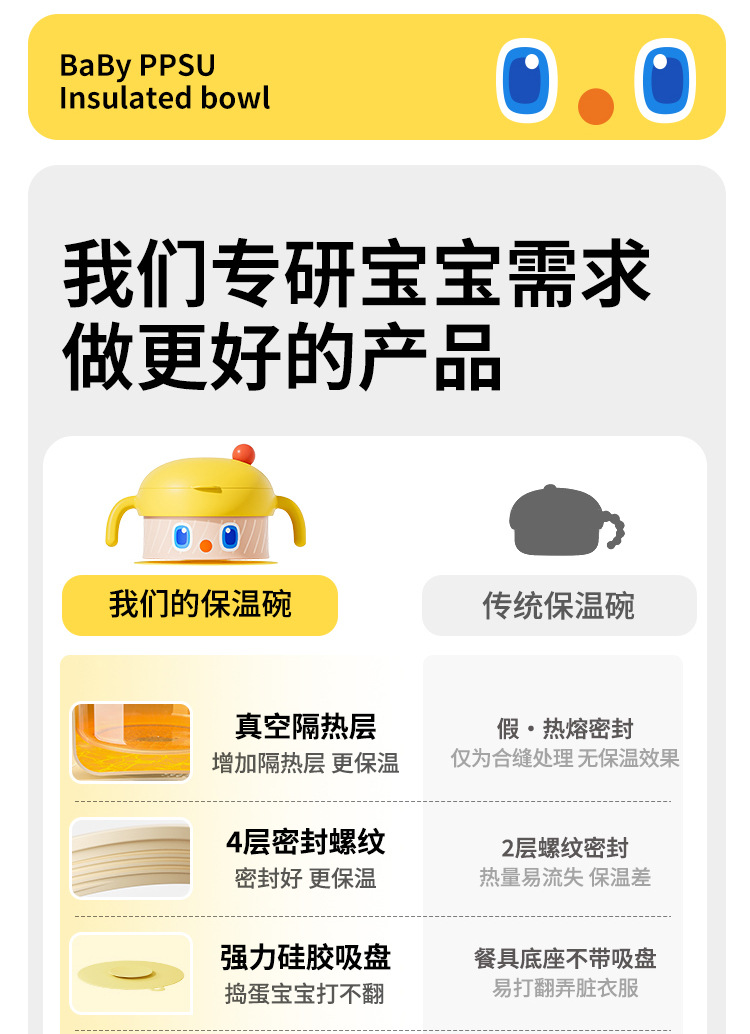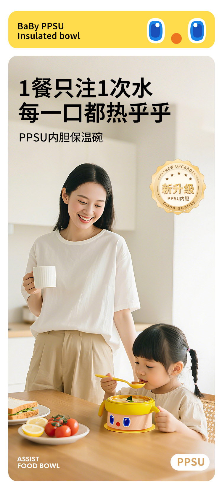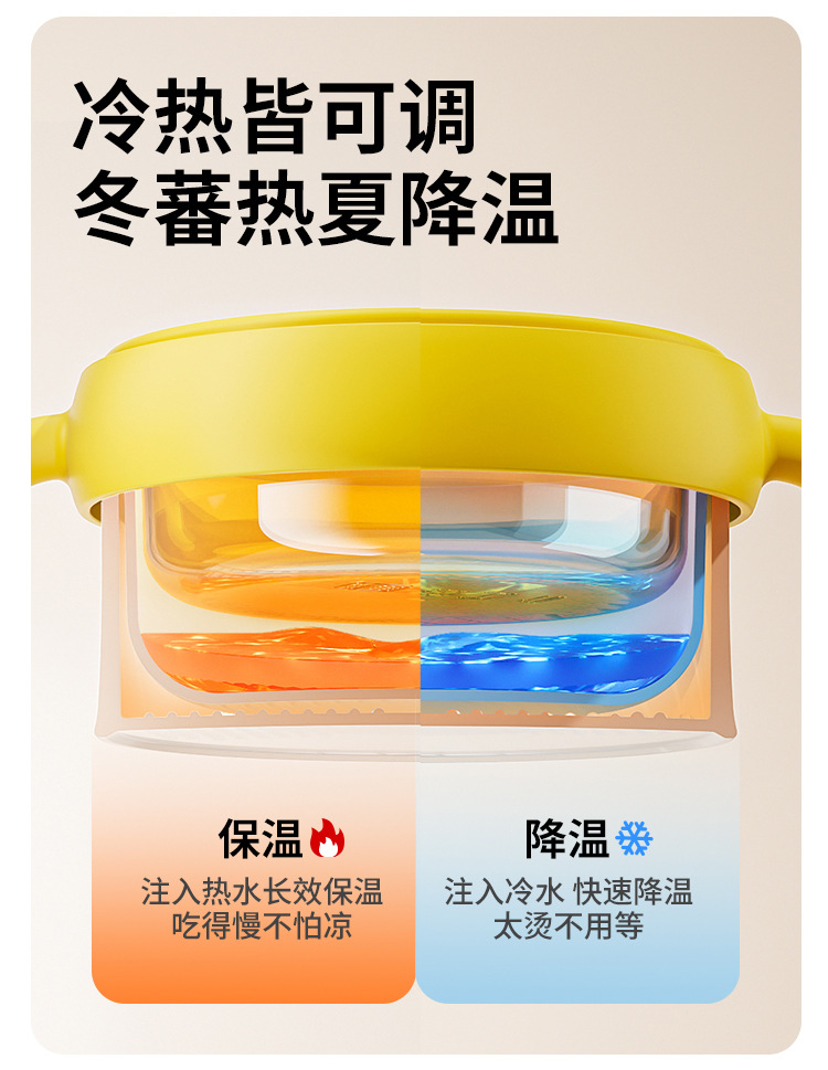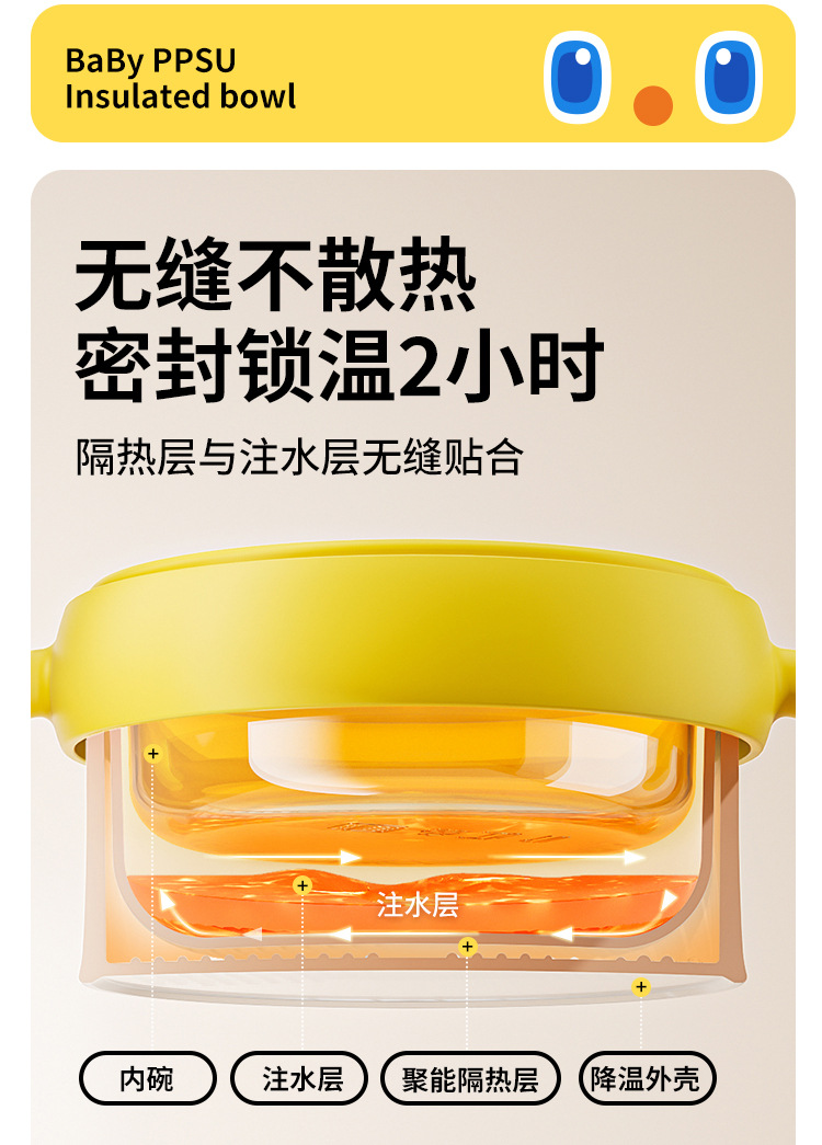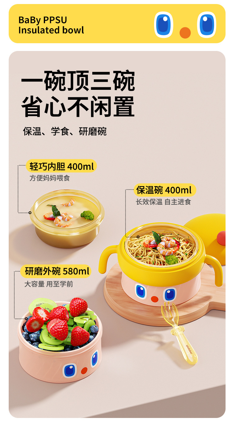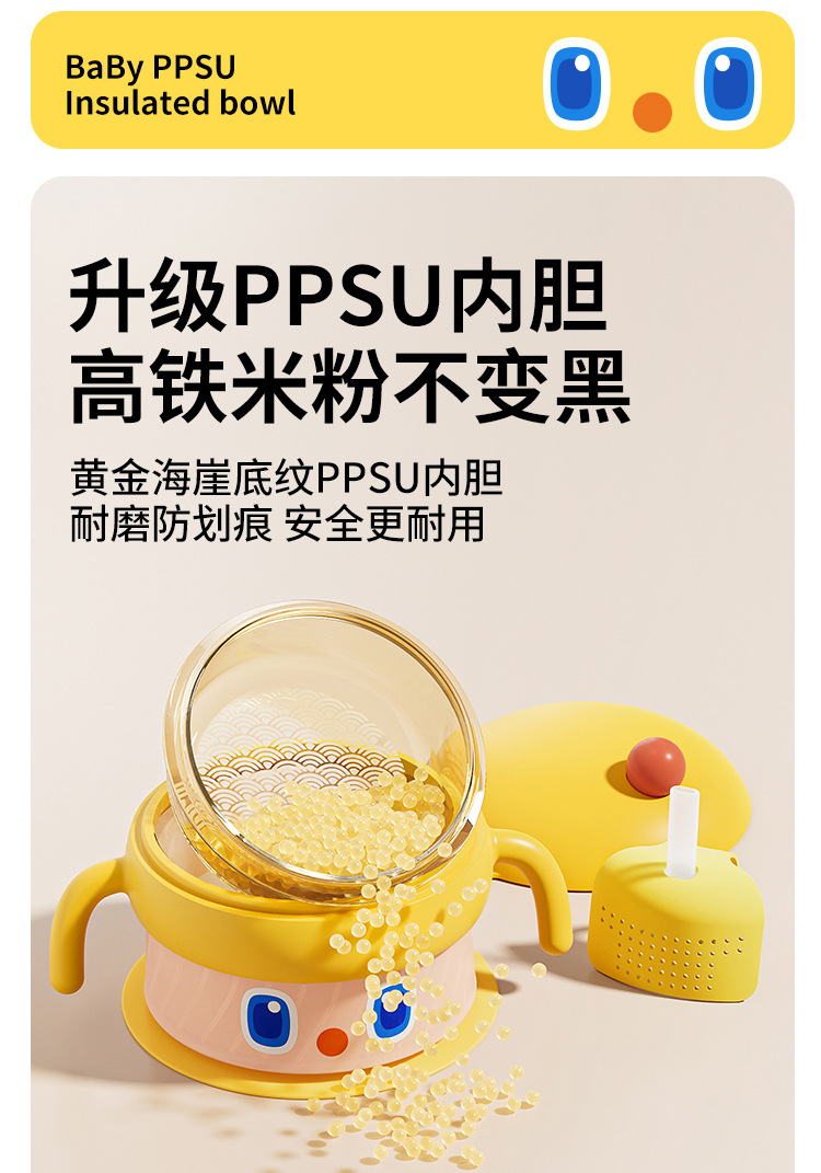 ベビーフードボウル、高鉄米粉、水入り保温ボウル、PPSU恒温子供用食器、卸売在庫あり