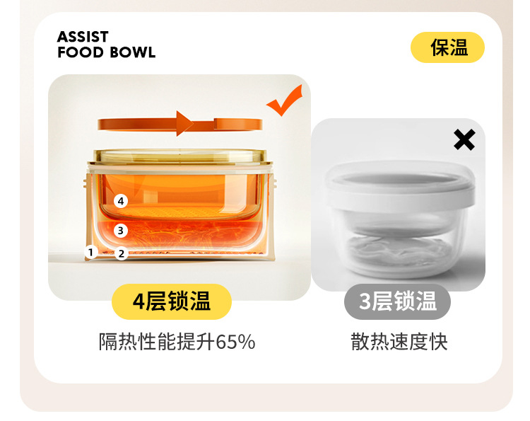 赤ちゃんのガラスの補助食品の碗の携帯密封の貯蔵箱の蒸し卵のスープの赤ちゃんの専用の補助食品の箱のガラスの補助食品の蒸し碗