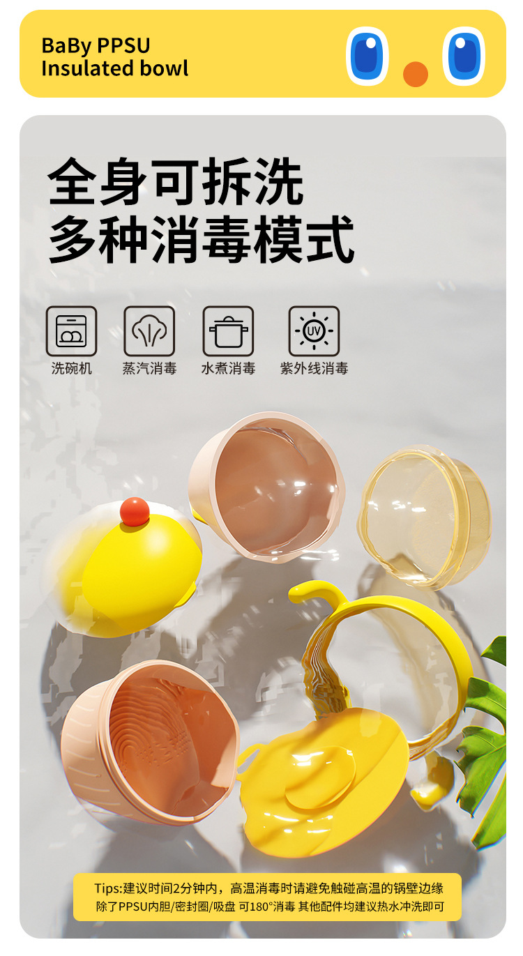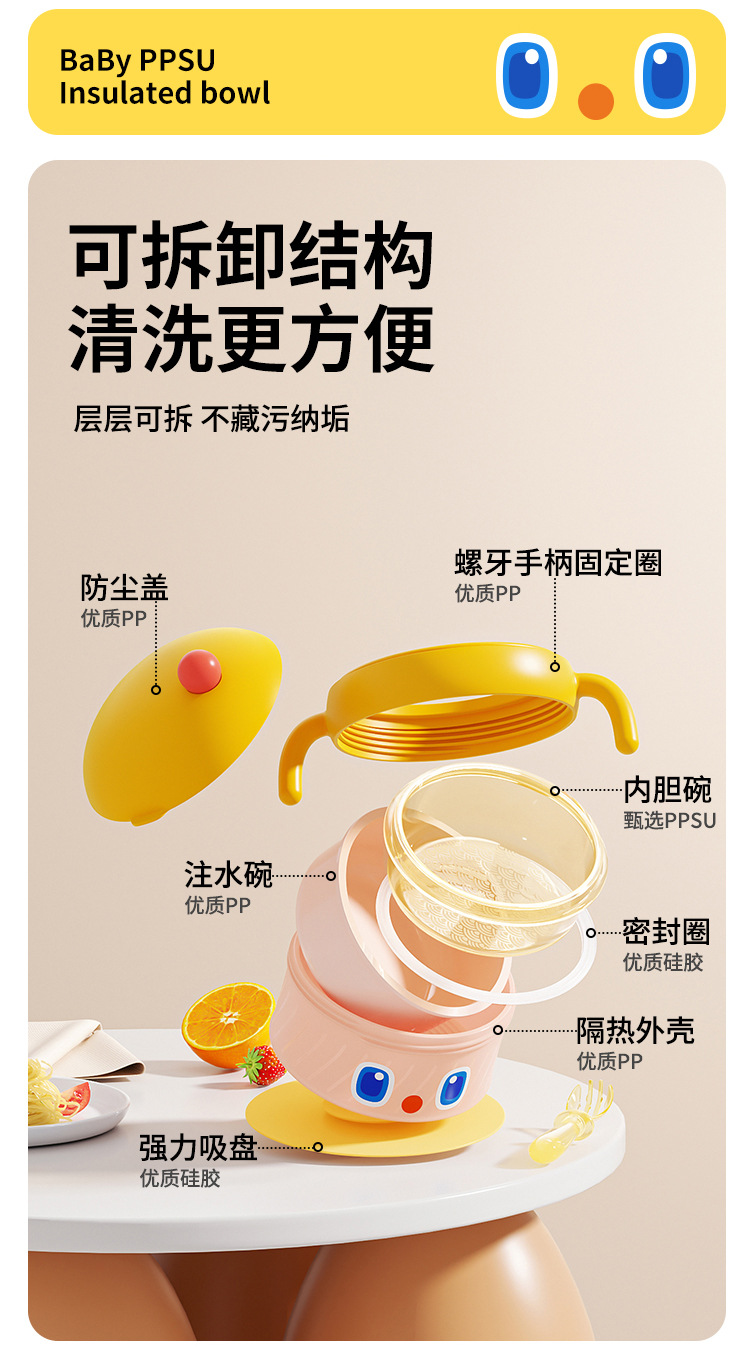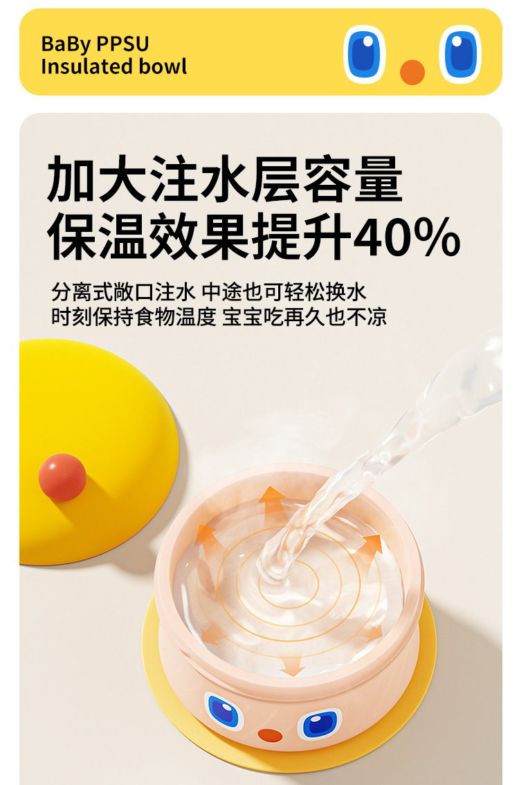 ベビーフードボウル PPSU 幼児水充填断熱ボウル子供の火傷防止食事吸盤食器メーカーはカスタマイズすることができます