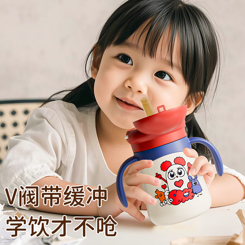 子供用保温カップ赤ちゃんストローカップかわいい携帯ハンドル付きストラップメーカー直販卸売りカスタマイズ可能