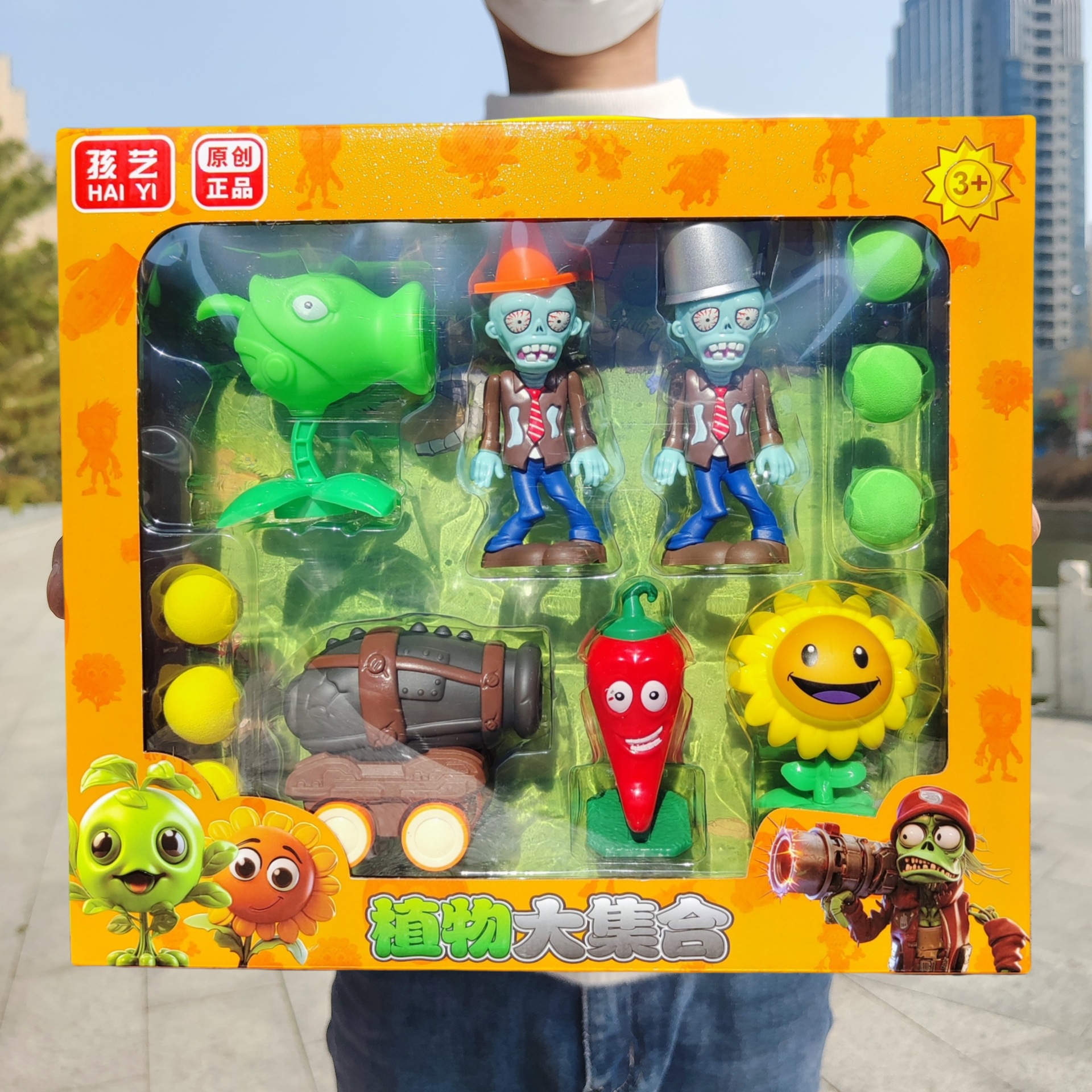 植物大戦ゾンビのおもちゃのフルセットのエンドウ豆の冷たい氷の射手のサボテン、木のココナッツと農砲の子供を開けます。
