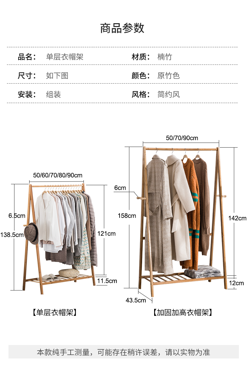 衣類ラック床置き家庭用シンプルな衣類乾燥ラック衣類ハンガーラックコートラック衣類ラック寝室床置き衣類ラック竹