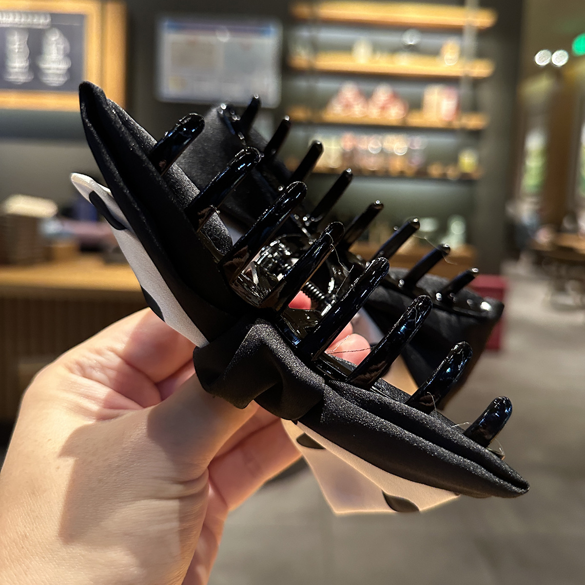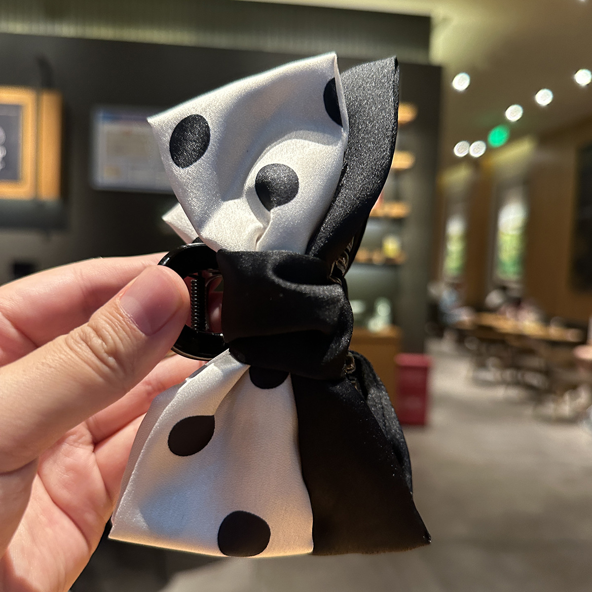 後頭部に半分結ばれたヘアアクセサリー、エレガントなヘアピン、女性用シャーククリップ、女性用ヘアアクセサリーの新しい黒と白の水玉模様のリボンクリップ