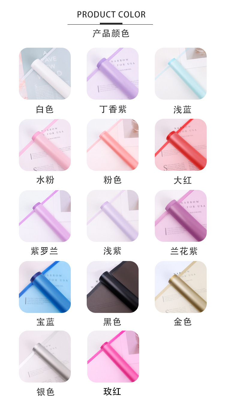 ローランド純色霧面魔辺半透明防水韓素紙花包装花芸花屋卸売り対外貿易起爆金