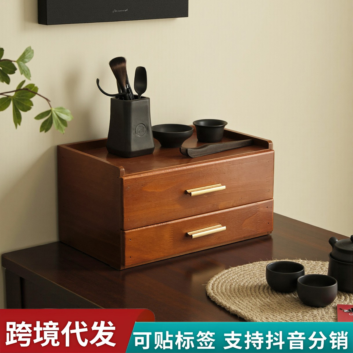 無垢材のデスクトップ引き出し収納ボックス、多層収納ボックス、寝室の化粧品・ジュエリーボックス、リビングルームのティーカップ・茶器収納ラック