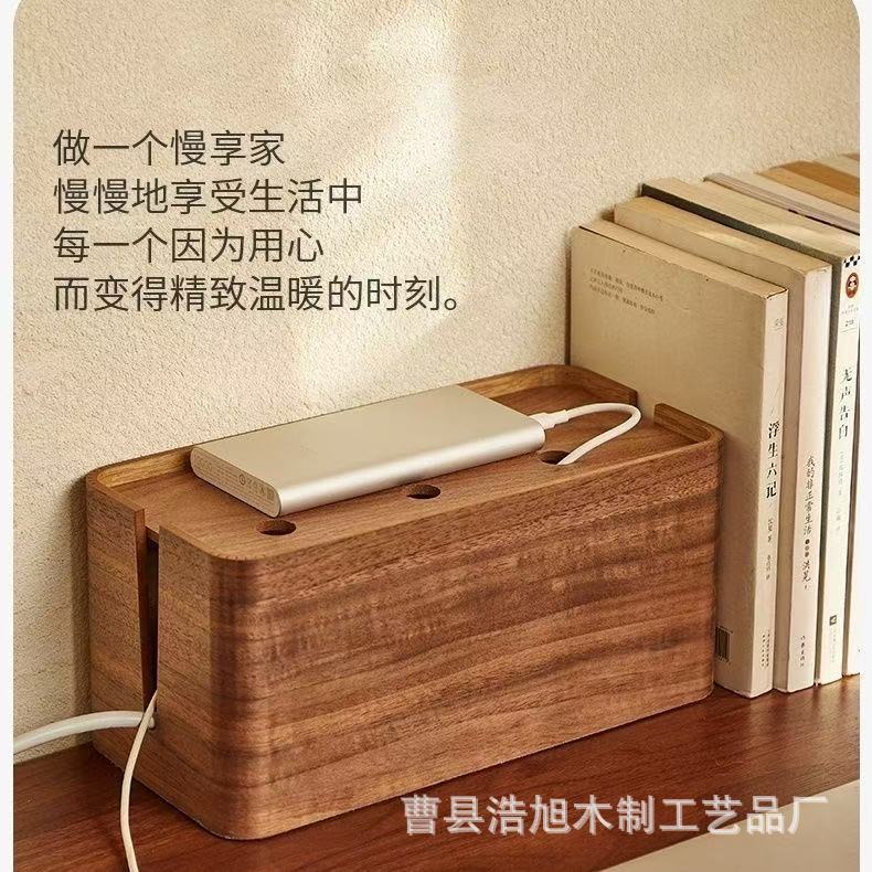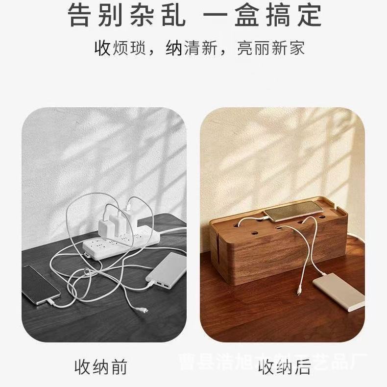 现货木质插线板收纳盒桌面电线整理收纳线盒插排插座电源线理线盒