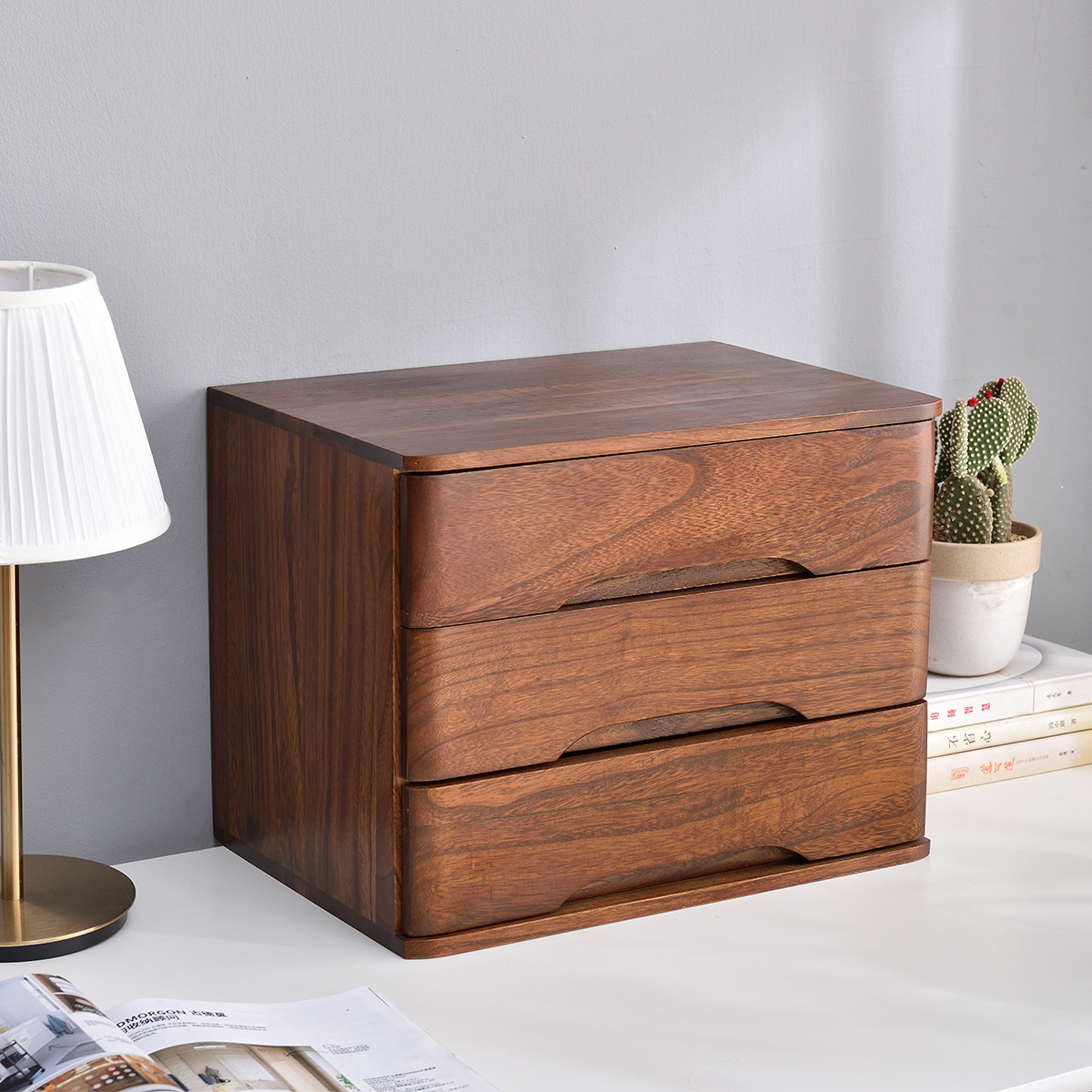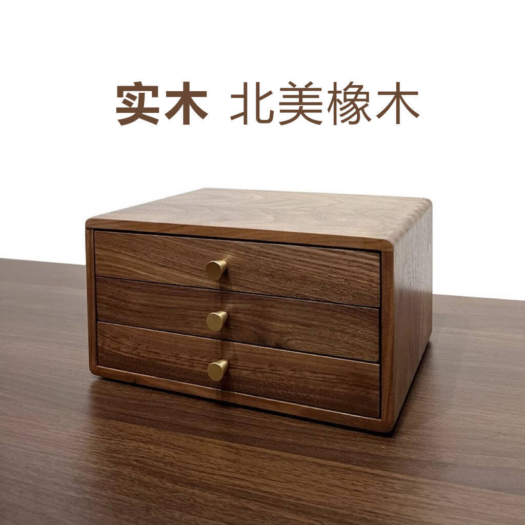 实木收纳盒桌面抽屉式多层储物盒简约入户玄关书房整理盒置物盒