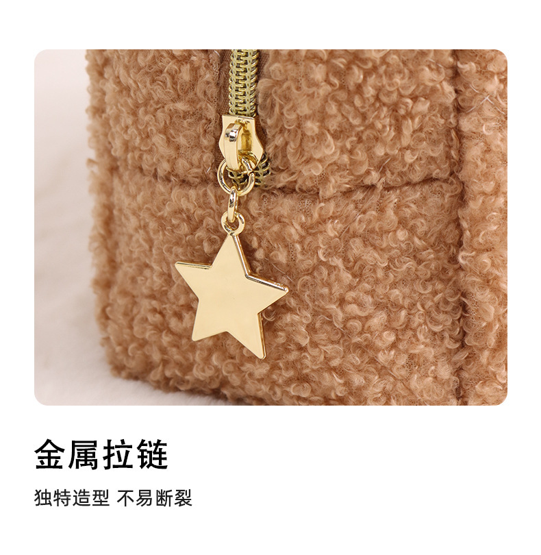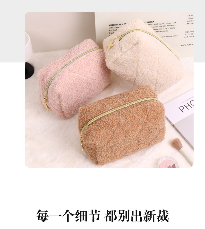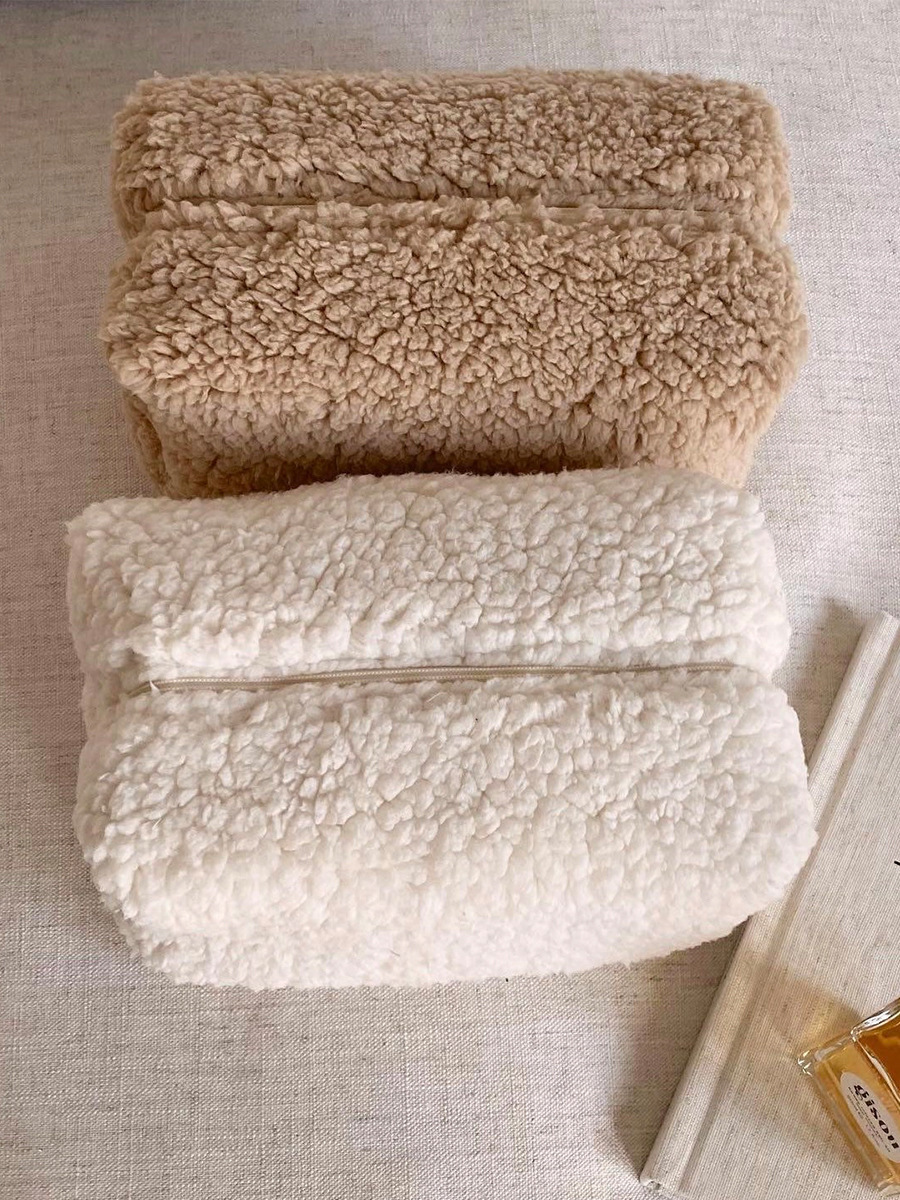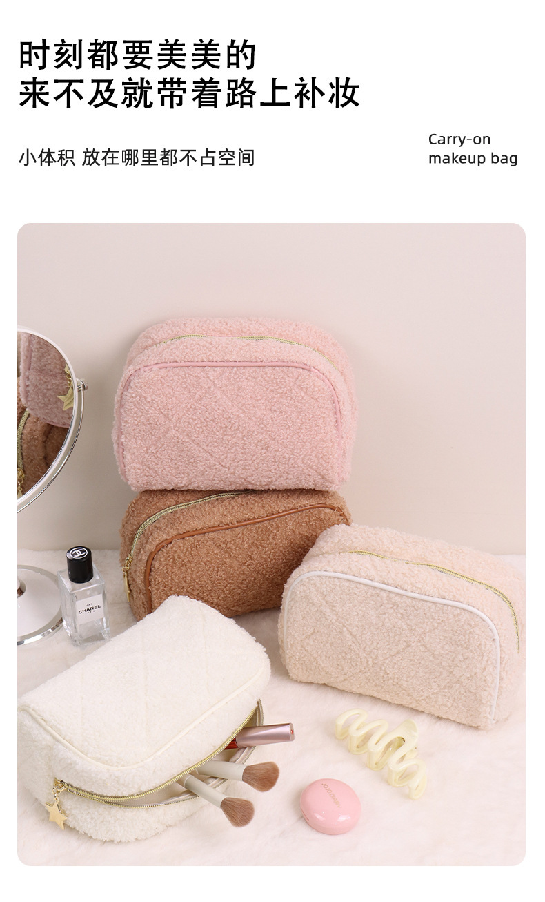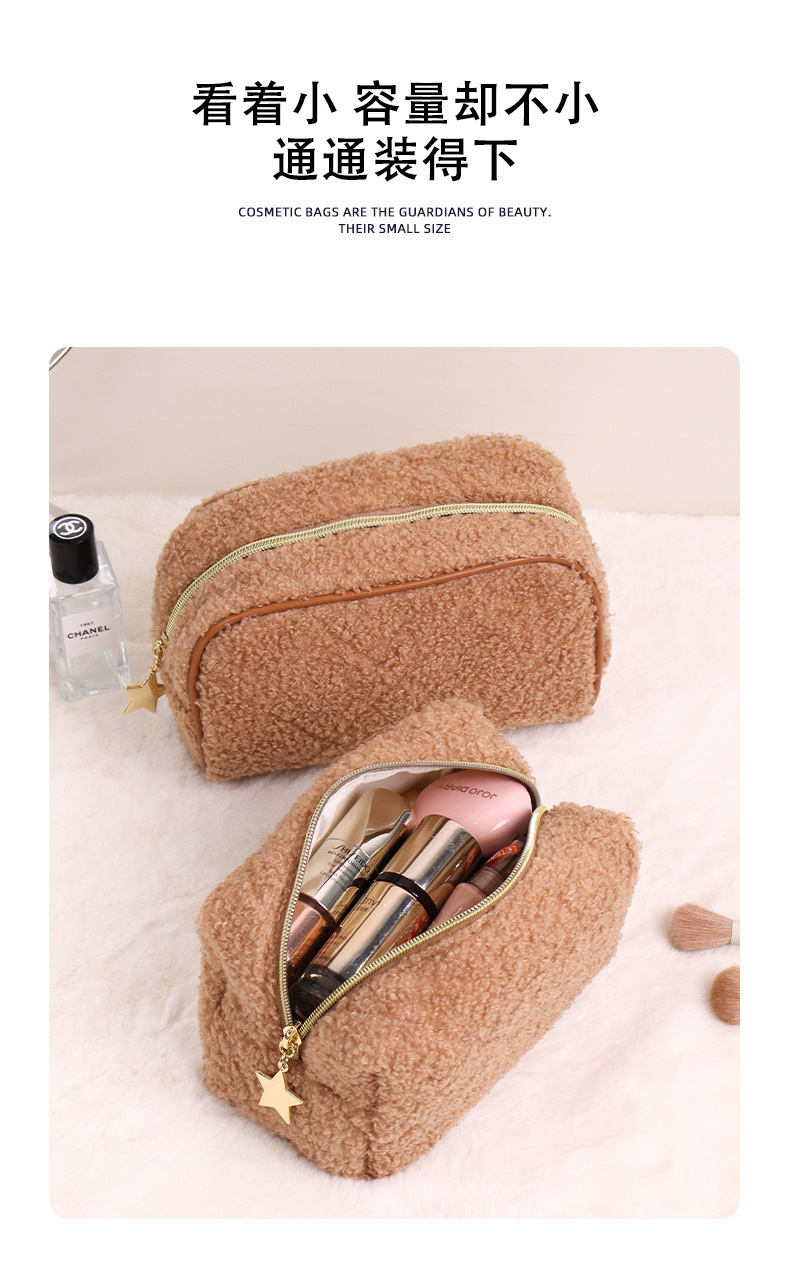 跨境泰迪绒化妆包日式羊羔绒小清新化妆品洗漱品收纳袋旅行收纳袋