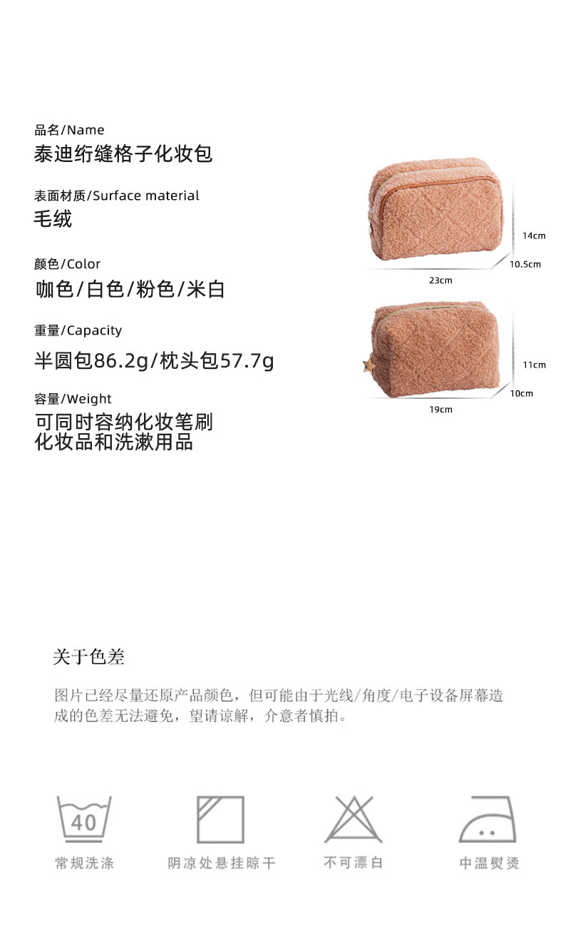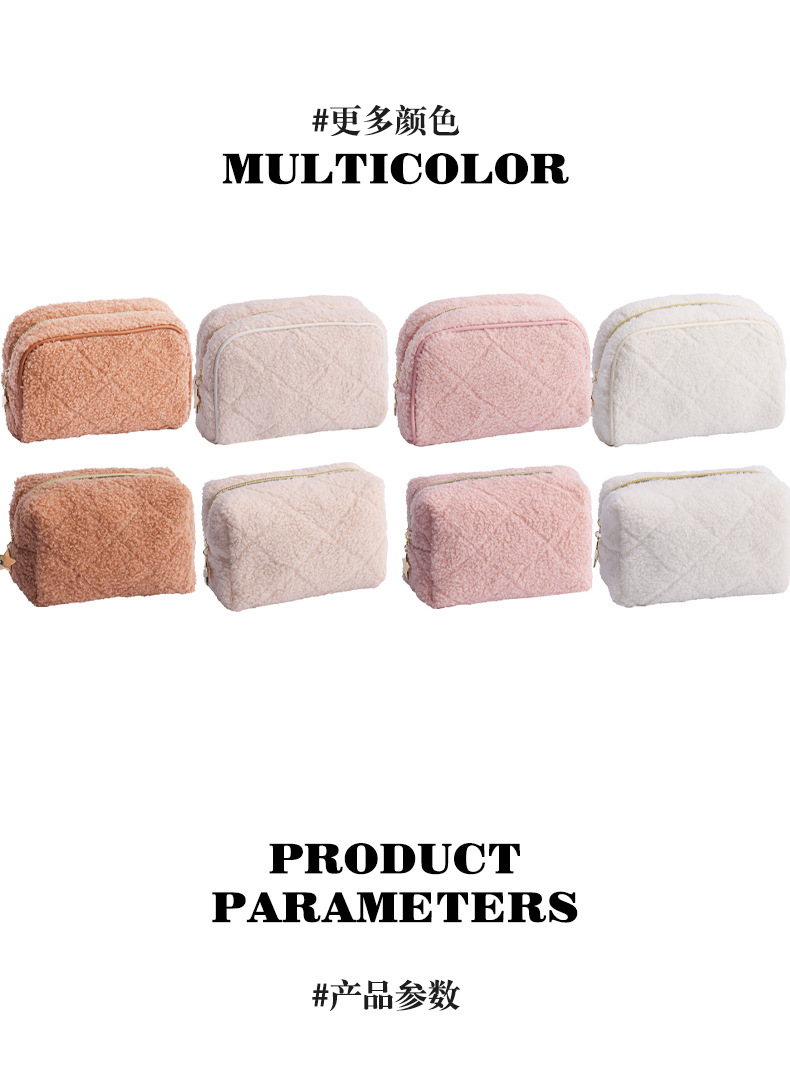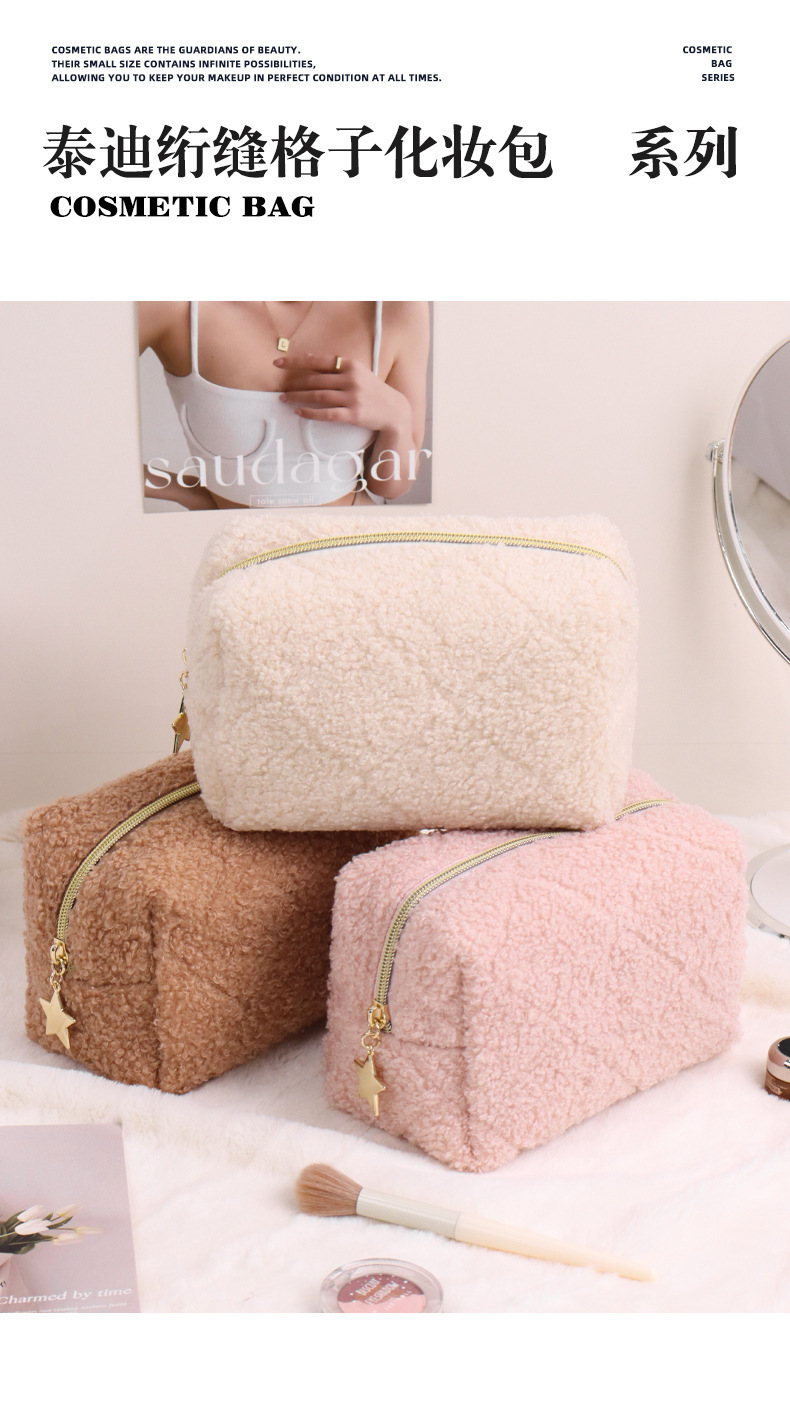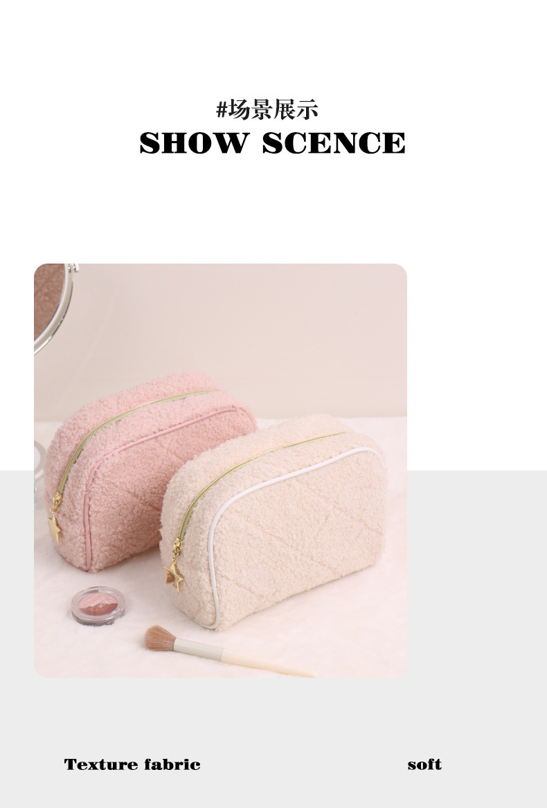 跨境泰迪绒化妆包日式羊羔绒小清新化妆品洗漱品收纳袋旅行收纳袋