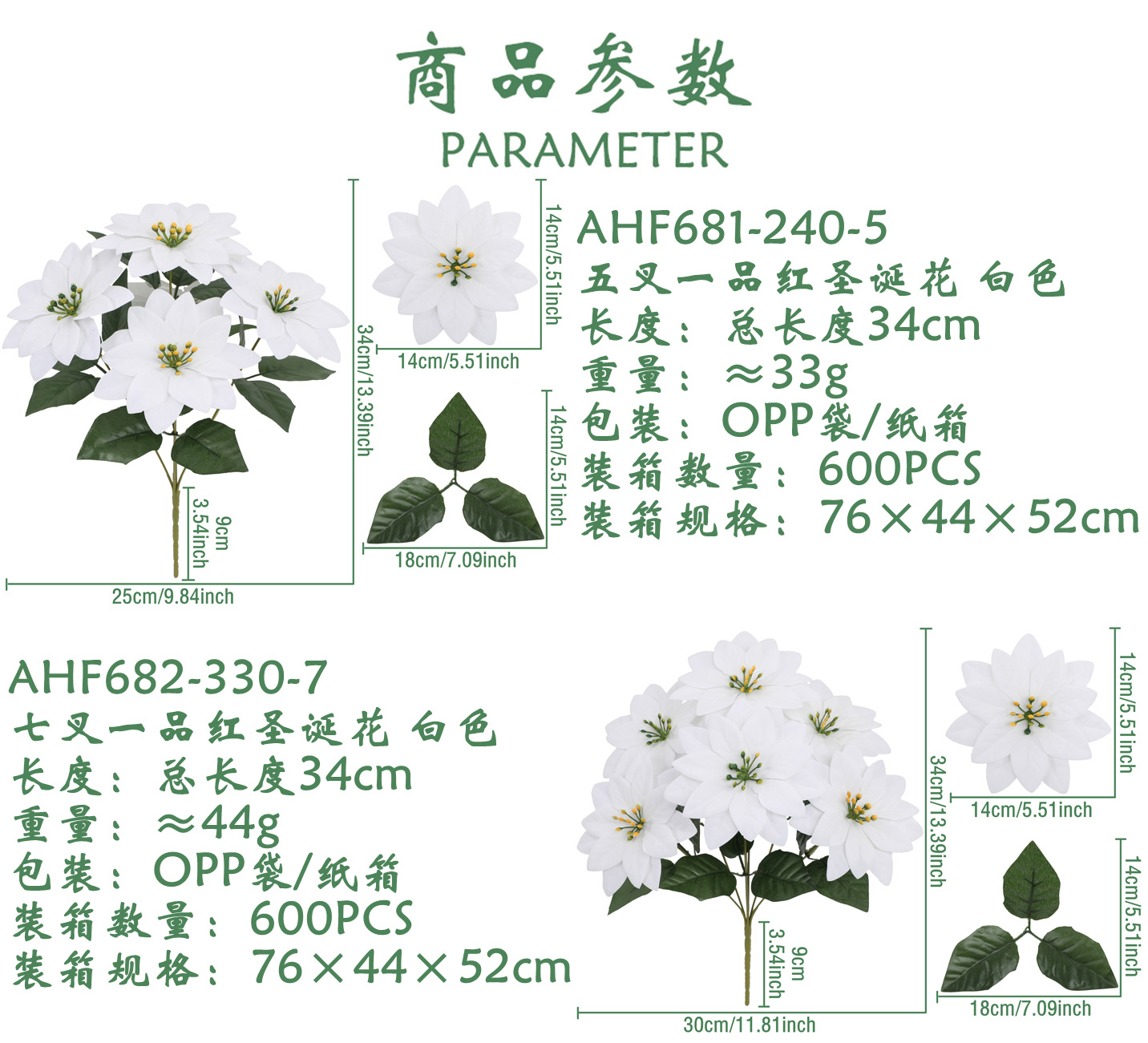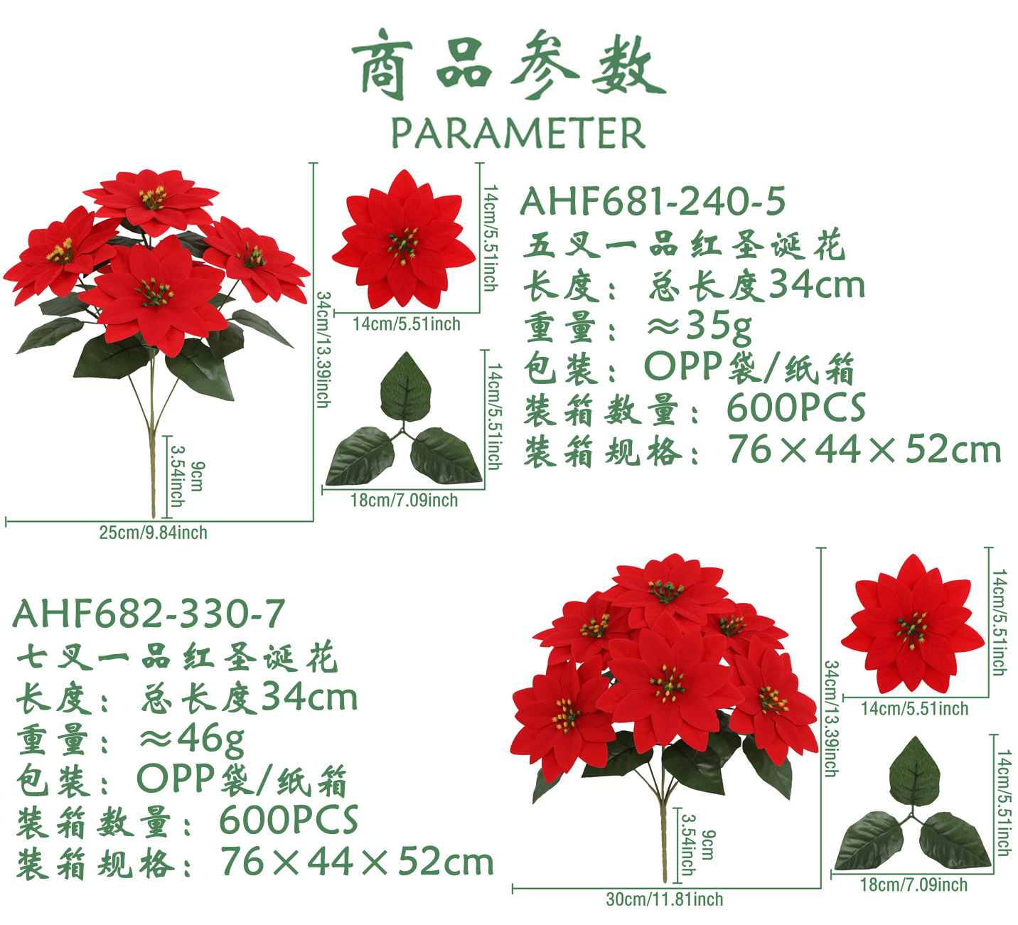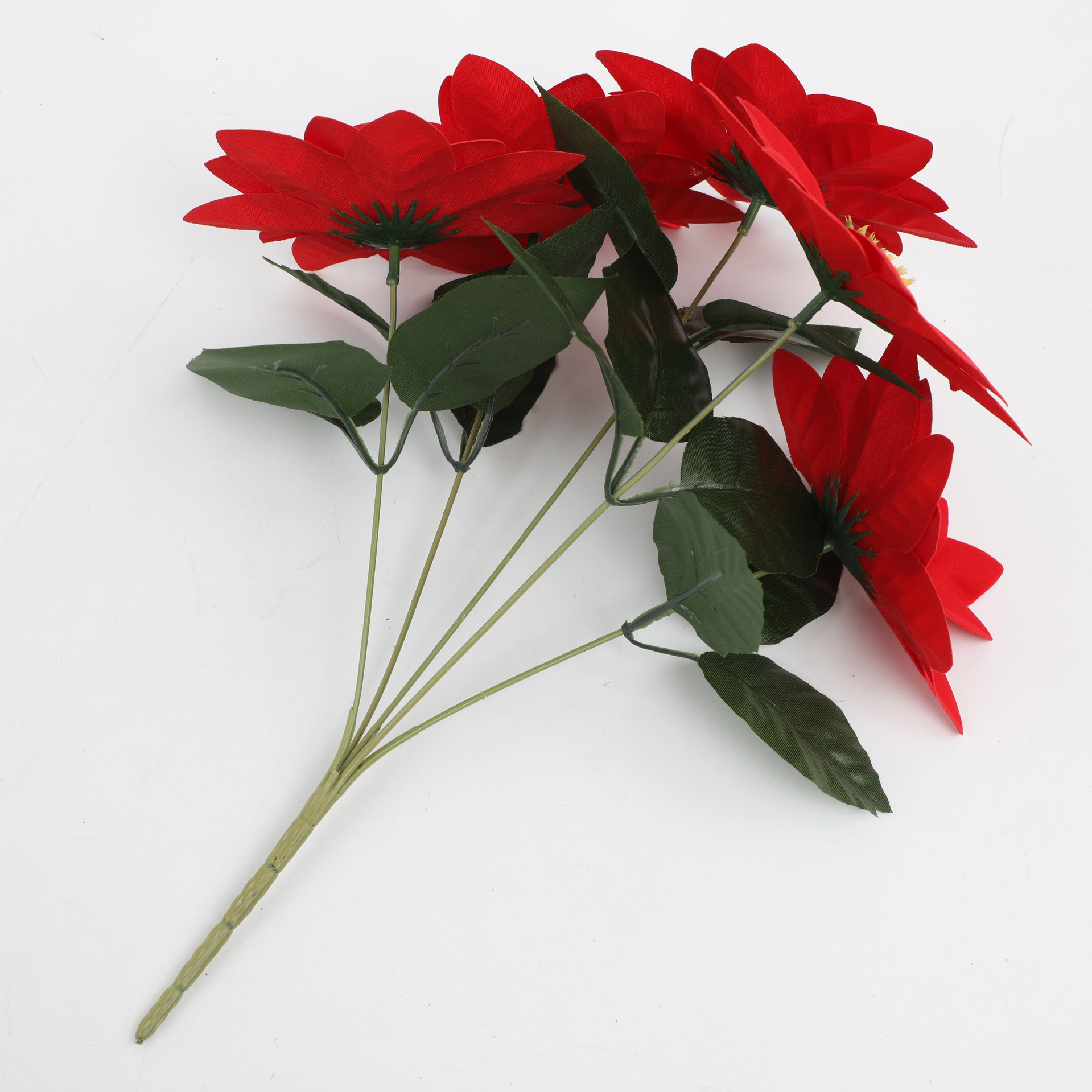 仿真7叉圣诞花 一品红圣诞装饰用品假花束节日活动婚庆用品热销