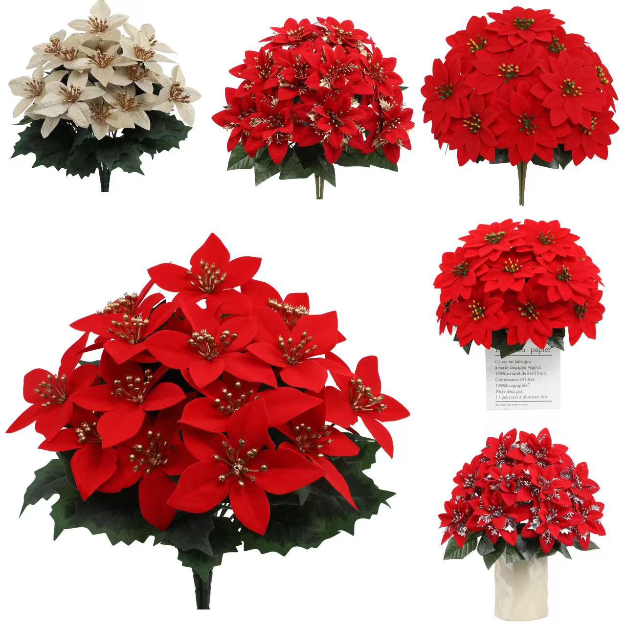 クリスマスポインセチア造花人工造花クリスマスフラワーブーケ屋外家の装飾小道具と装飾品卸売