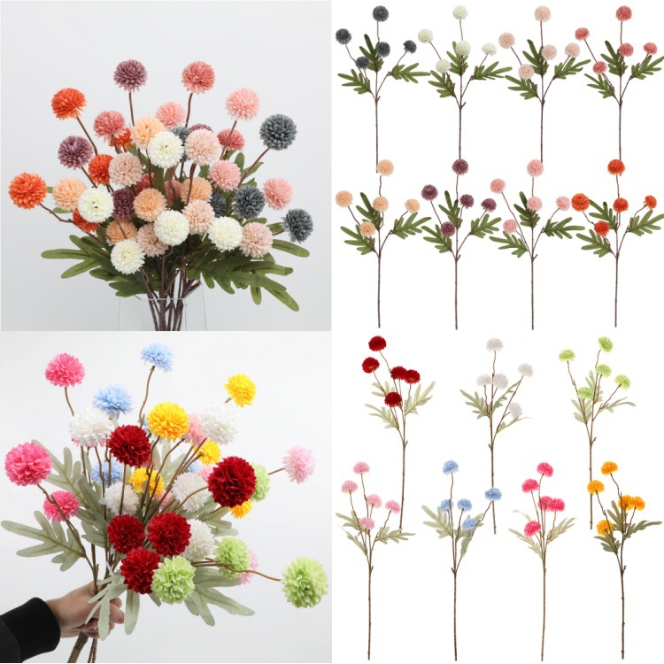 模擬花タンポポボール菊卓球フラワーアレンジメントウェディング撮影小道具装飾品アクセサリー造花卸売