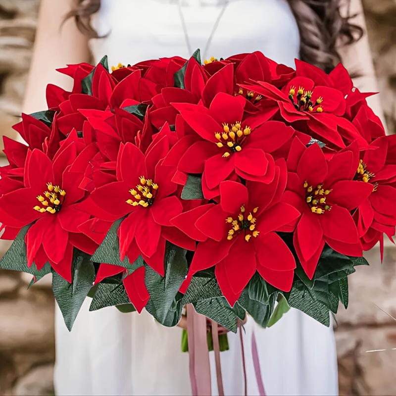 模擬クリスマスフラワー、模擬花束、ポインセチア花束、ベルベット布、ホームデコレーション、屋外装飾、造花、越境卸売