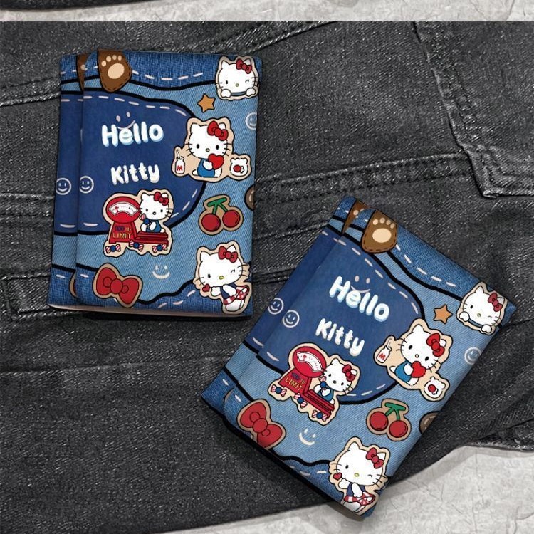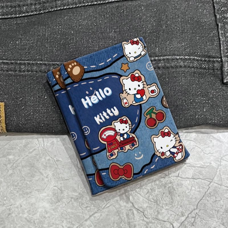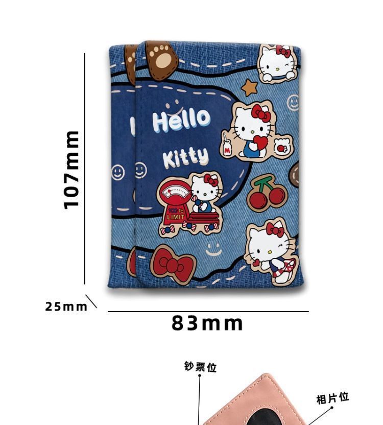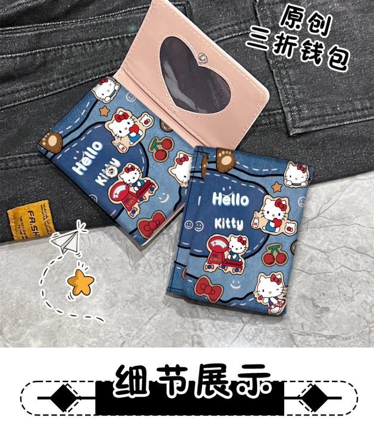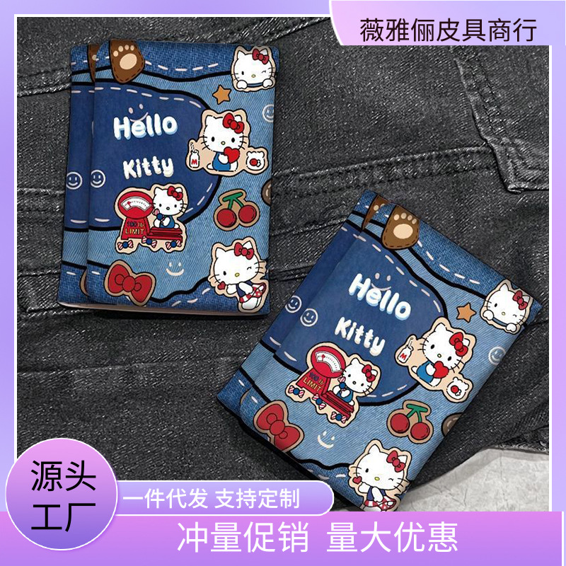 牛仔凯蒂猫三折钱包新款情侣零钱包多功能卡包一体多卡位可爱收纳
