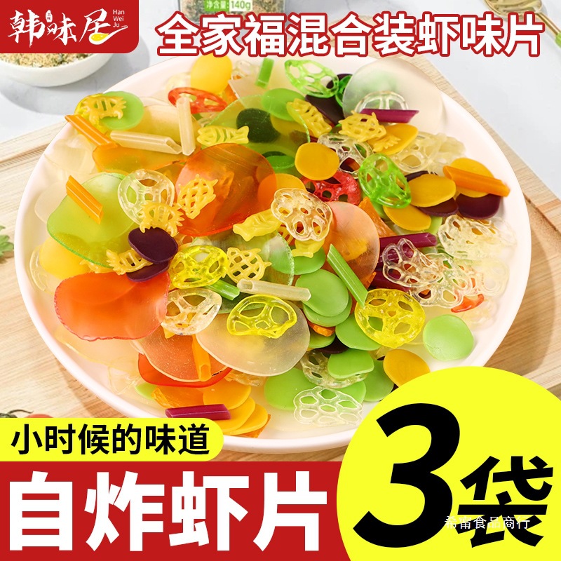 全家福彩色虾片自己炸薯片小零食8090后童年怀旧小吃休闲年货零食