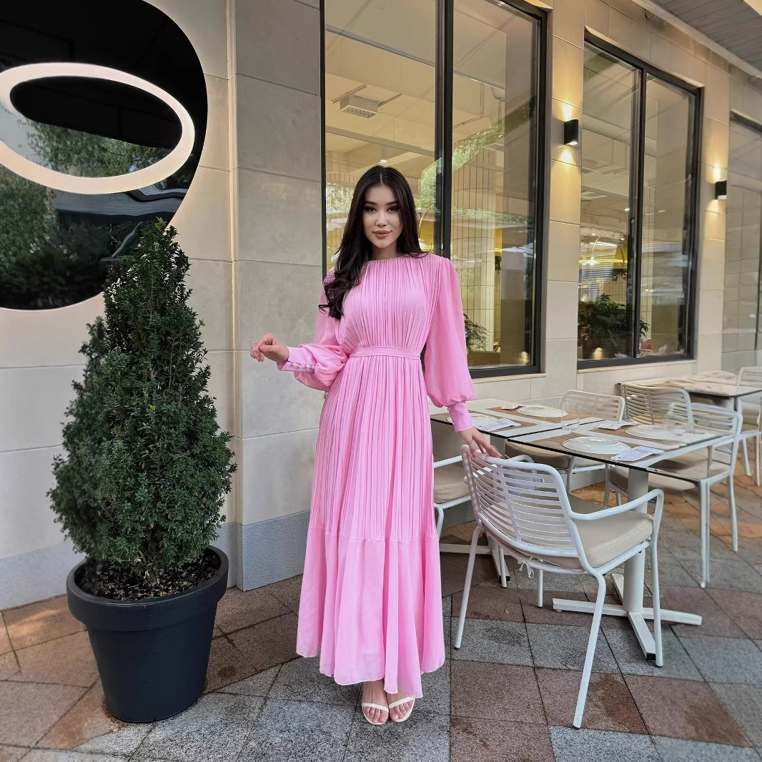 国境を越えたアマゾンヨーロッパとアメリカの貿易新しいフレンチスタイルのプリーツ大きな裾シフォンドレス