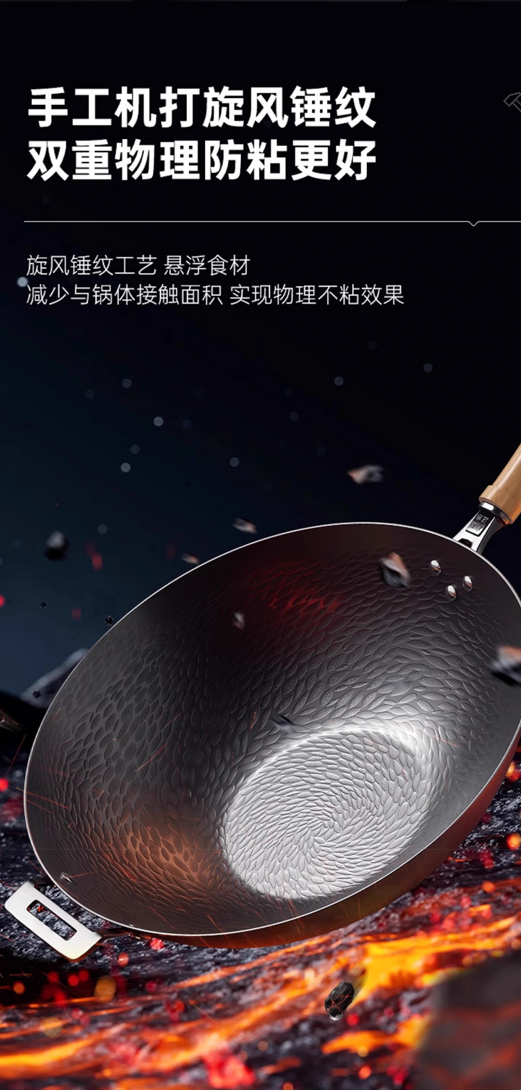 古珍匠旋風槌目平底丸底鉄鍋、家庭用炒め鍋、焦げ付きにくい、錆びにくい、無塗装鍋