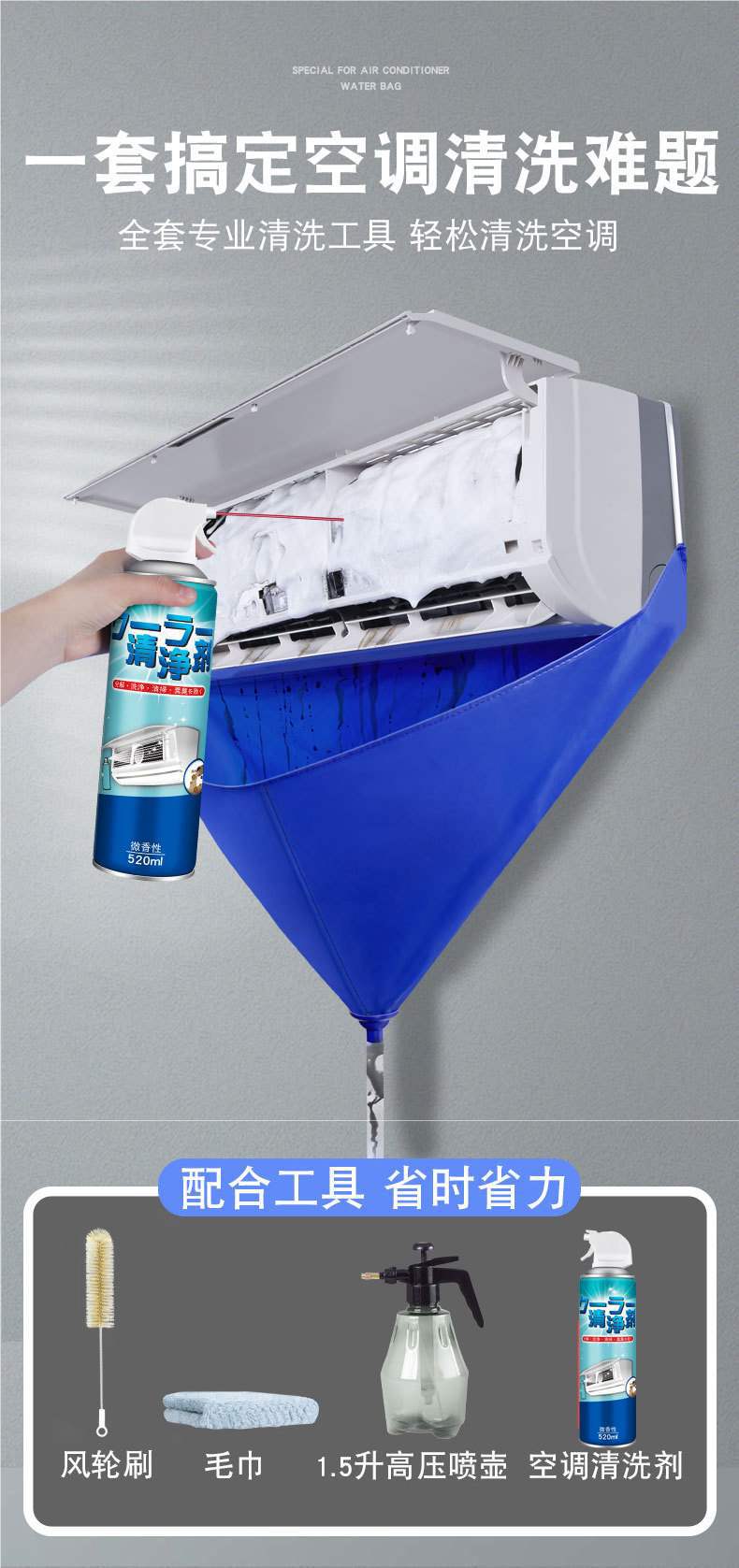 エアコン風車洗浄ツール洗浄剤泡水汚れ洗浄水受けカバーフルセット洗浄ツールバッグ吊り下げ機