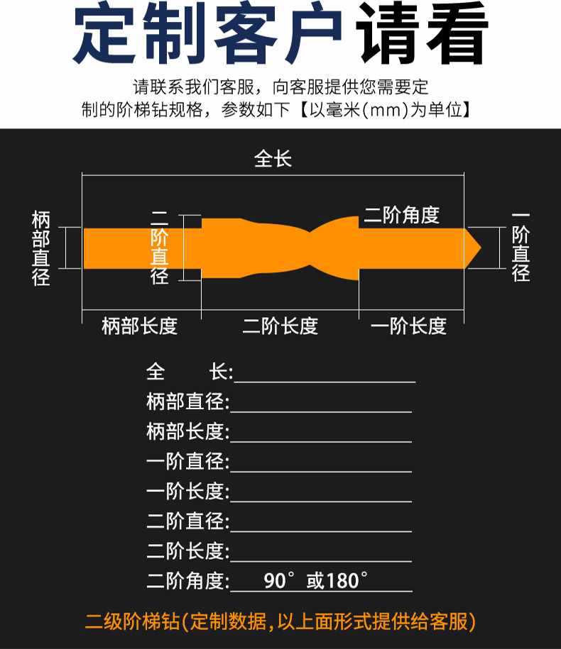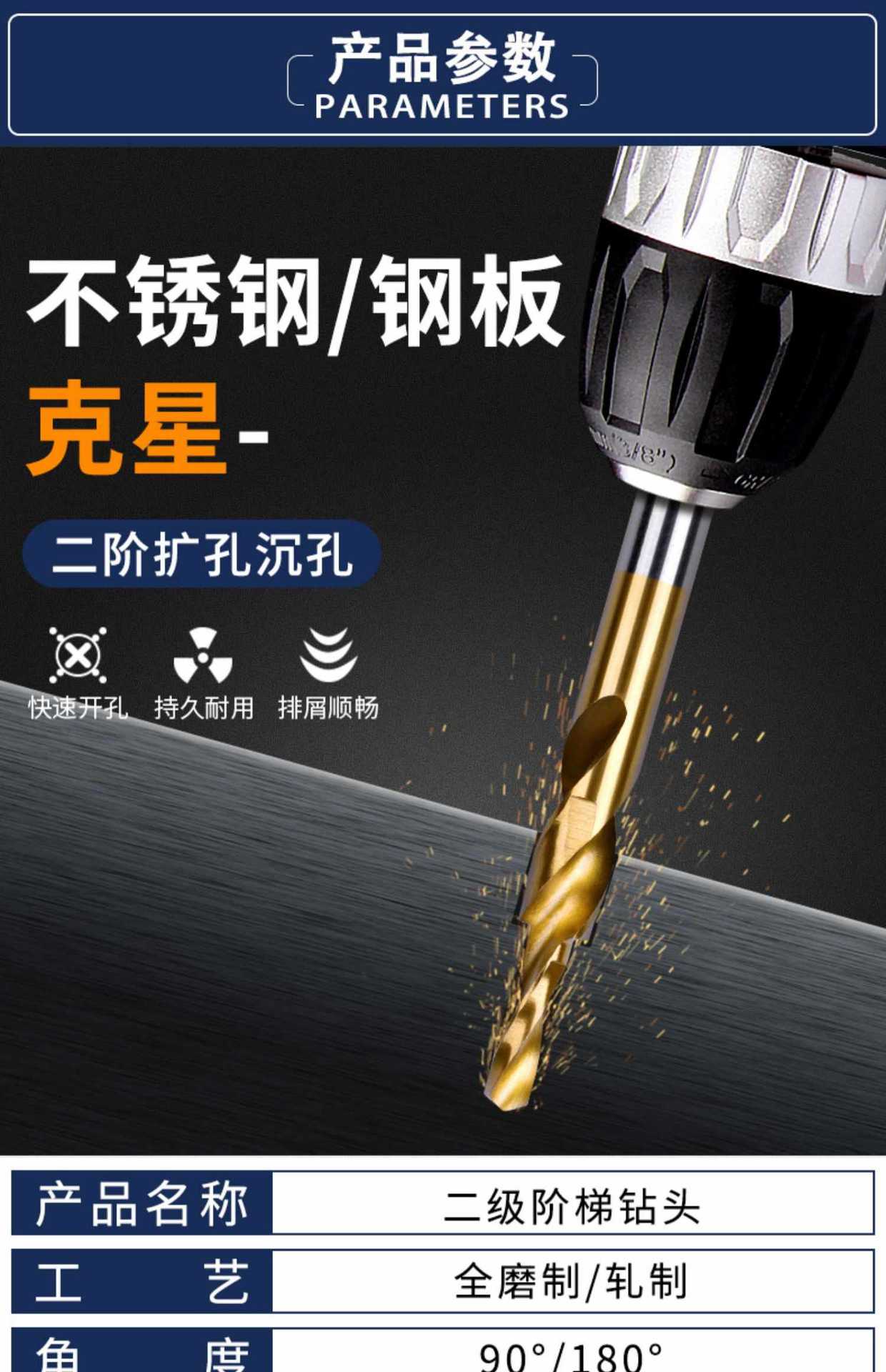 9YW 2 段ステップドリルビット 90 度皿穴ドリルビット、ステンレス鋼の可変直径拡張穴と面取り付き
