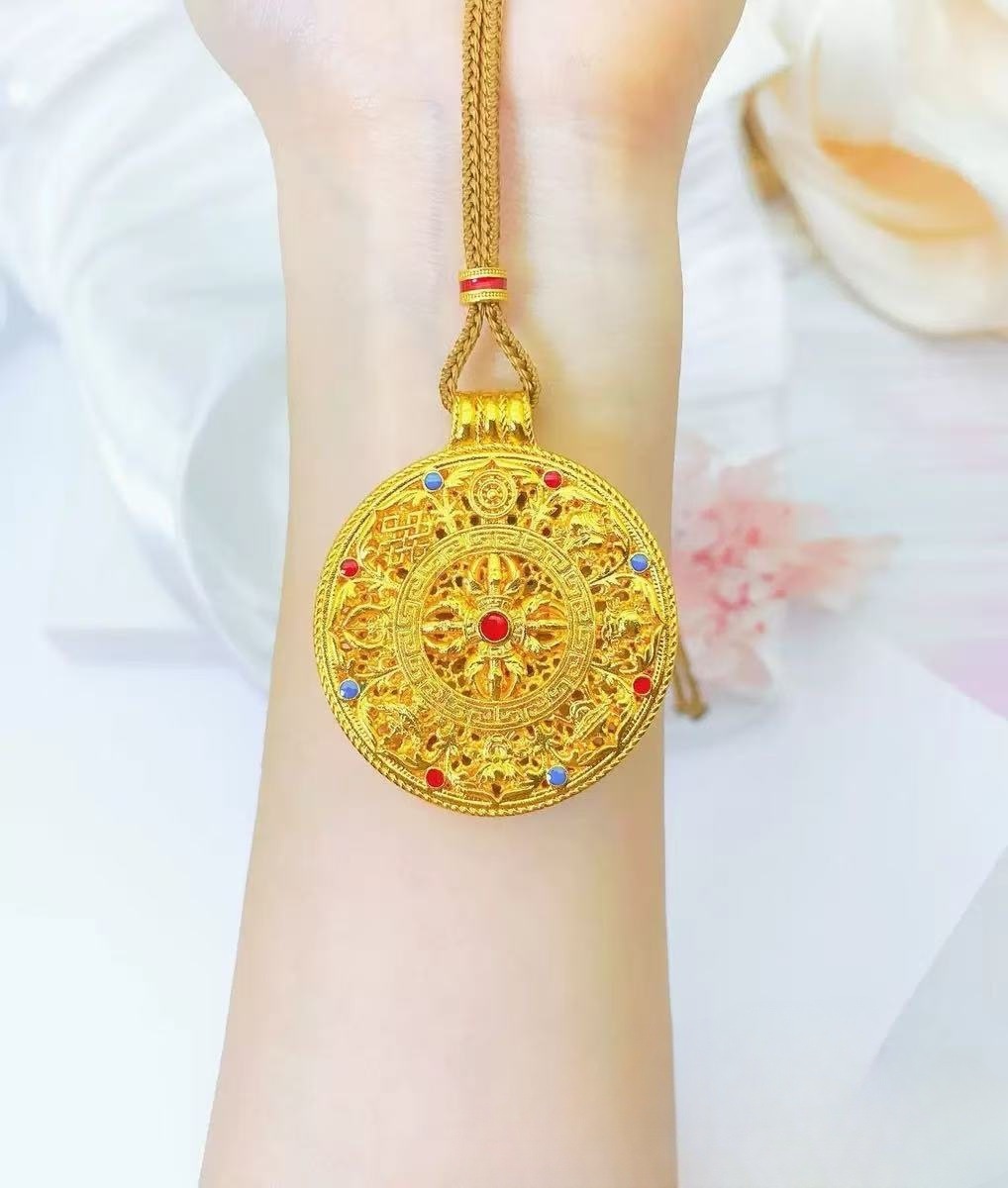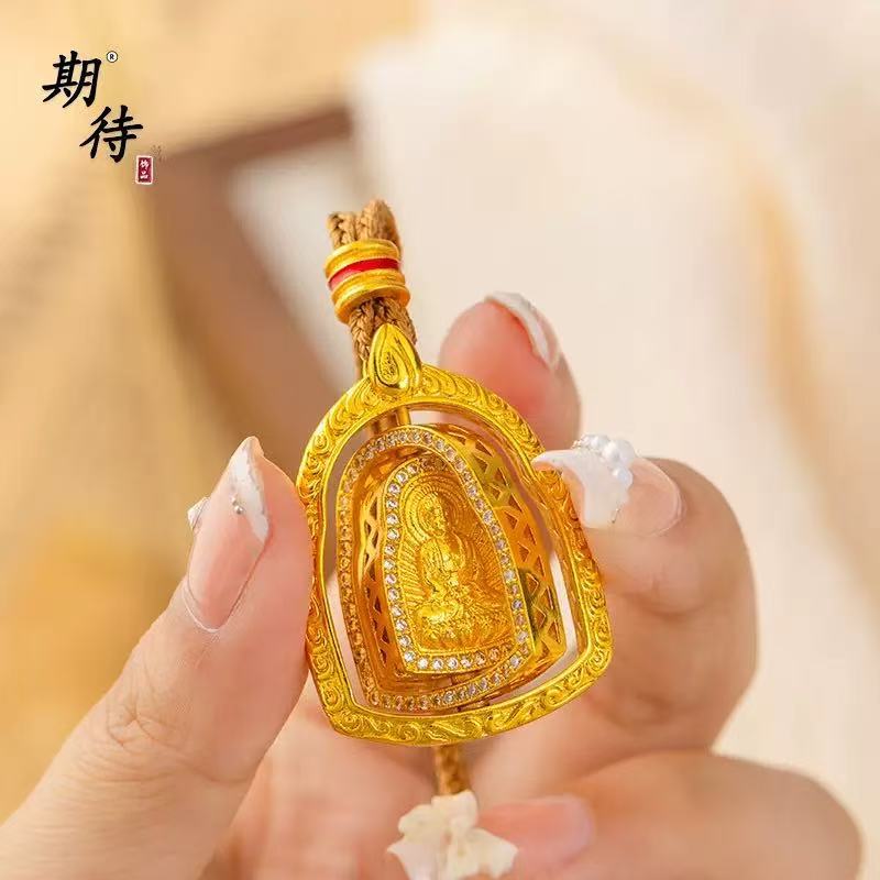 镀真金转动滴胶十字架编绳项链女款旋转葫芦八宝罗盘吊坠罗盘沙金