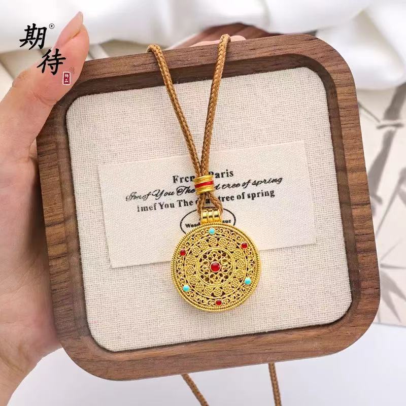 藏式s925纯银西藏民族风吊坠黄财神绿度母镶嵌彩宝个性小众批发