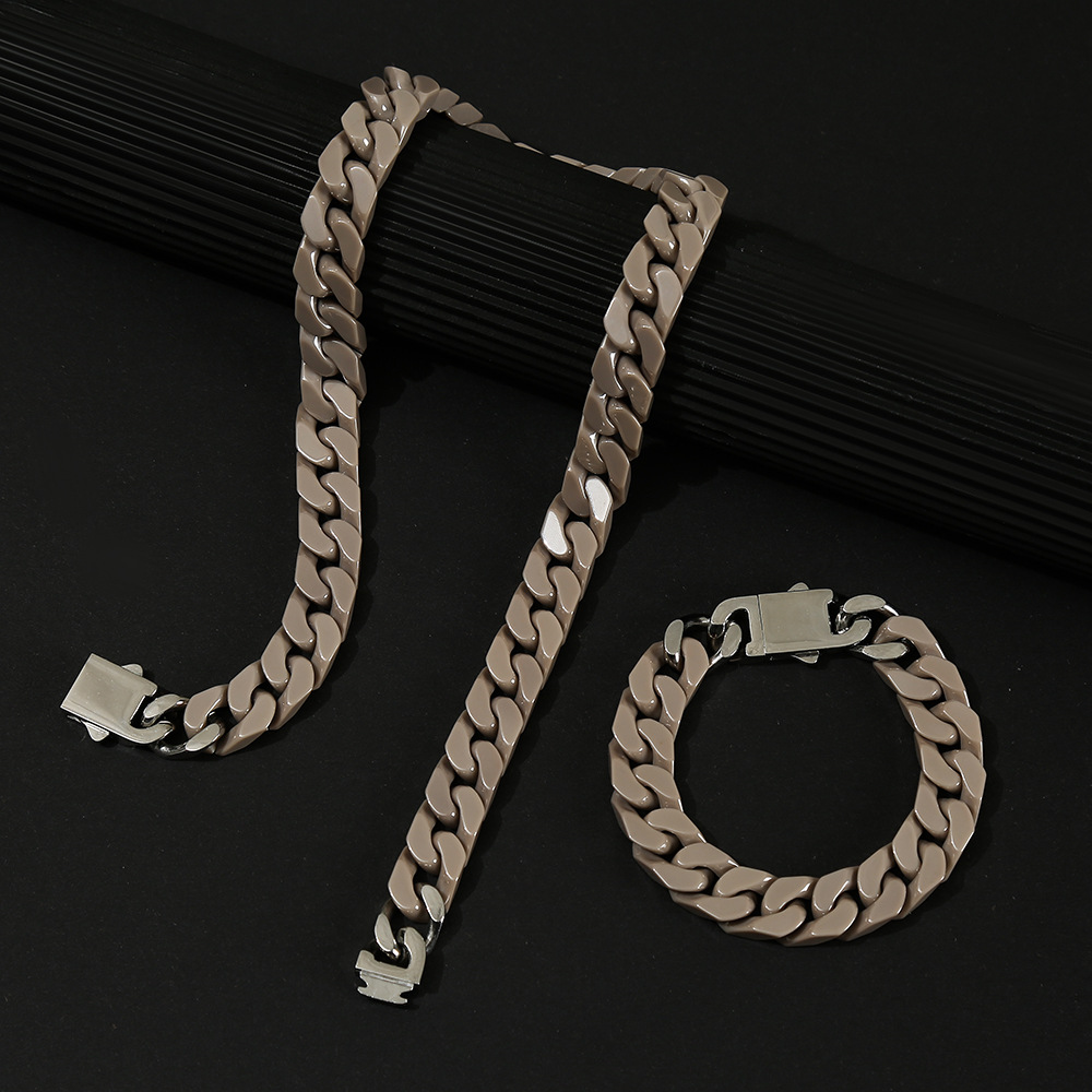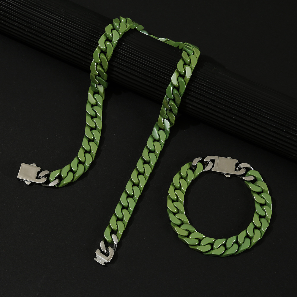 ヨーロッパとアメリカのストリートヒップホップキューバチェーンセラミックキューバブレスレットネックレスバイオ磁器キューバチェーンヒップホップジュエリーセット