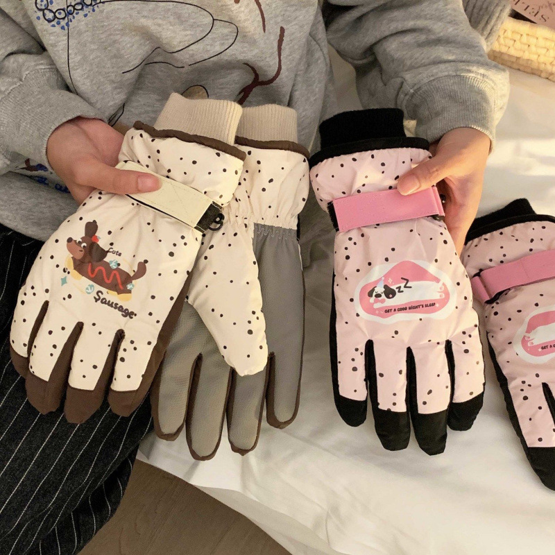 可爱防风滑雪加绒可触屏冬季保暖手套冬天骑车防寒加厚电动车