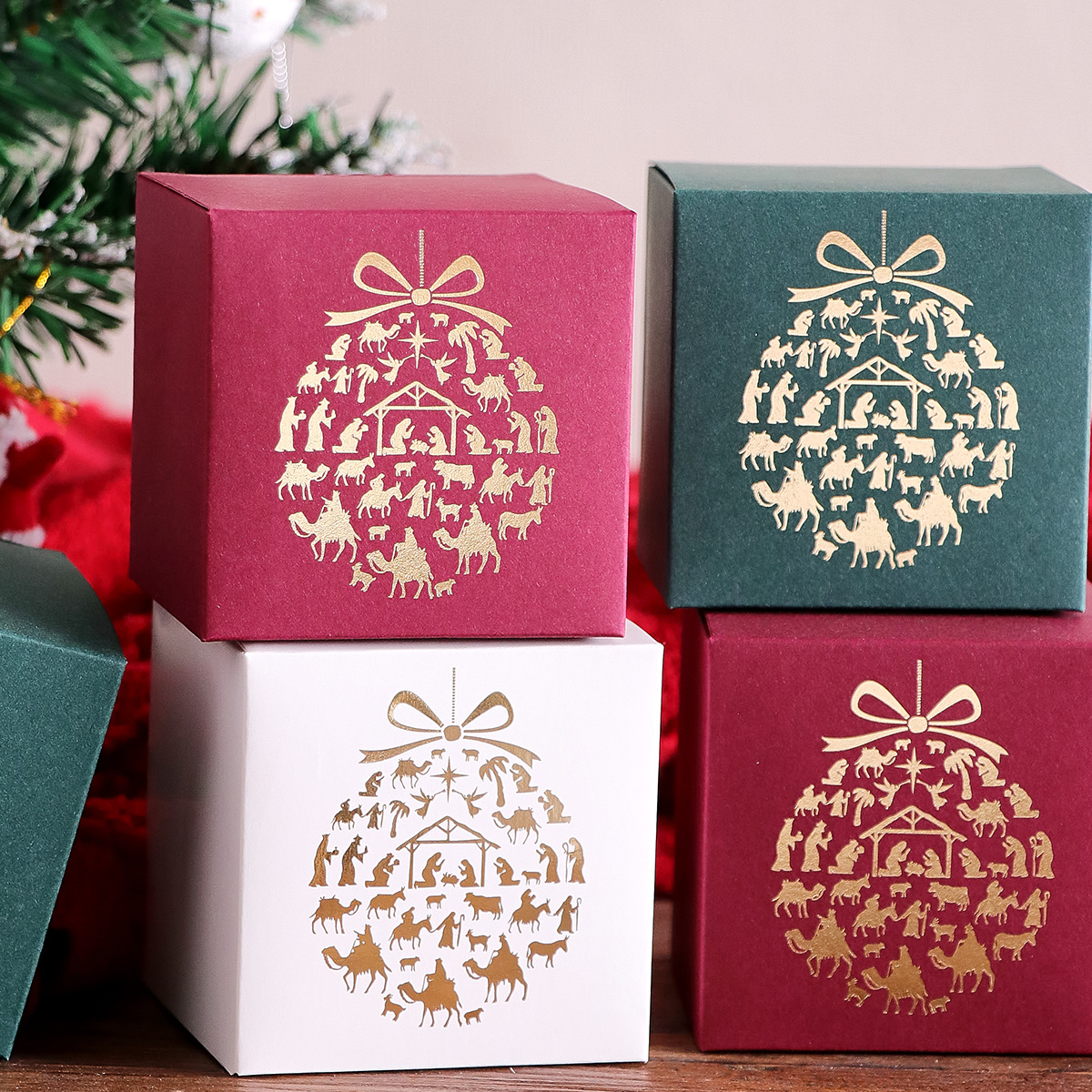 圣诞节烫金正方盒创意糖果盒高档红色烫金圣诞树礼盒跨境电商专供