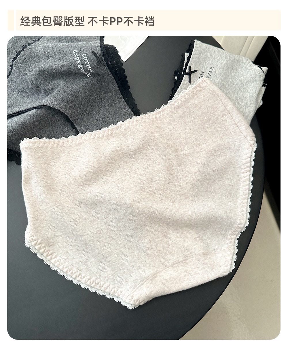 アメリカングレーの女の子用ピュアコットン下着、ミッドウエストダークパターンジャカード、快適でシームレスなヒップカバーシルククロッチ下着
