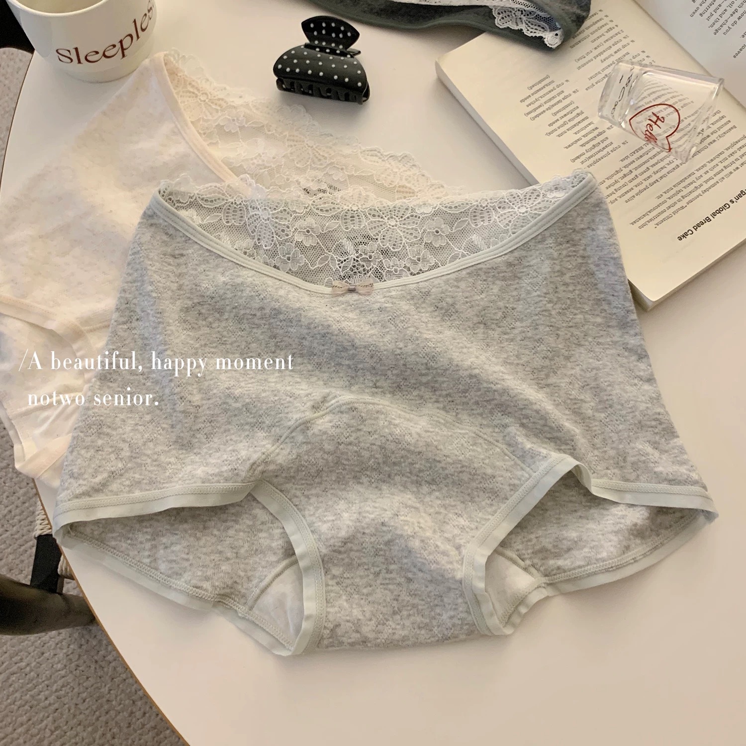 日本系ホワイト盗心ロリメイドパンツ中腰モデル綿通気綿股セクシーレース三角パンツ