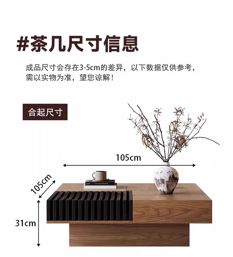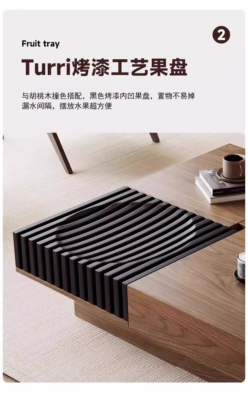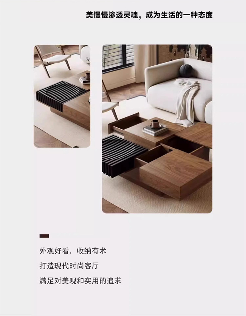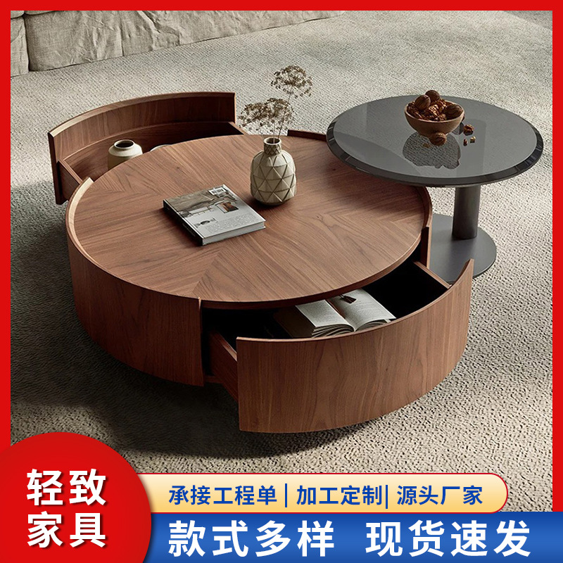 意式极简胡桃木色圆形茶几大小圆茶几简约小户型客厅储物茶几组合