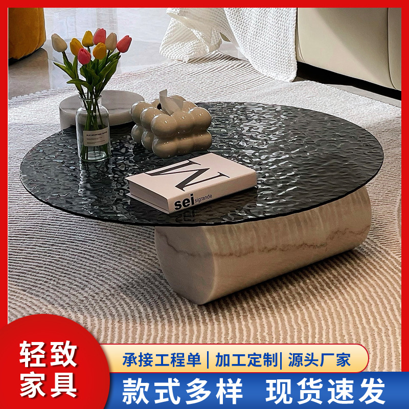 水波模様強化ガラスティーテーブル リビングルーム用 家庭用 小型 高級感 モダン イタリア風ティーテーブル シンプル 丸型