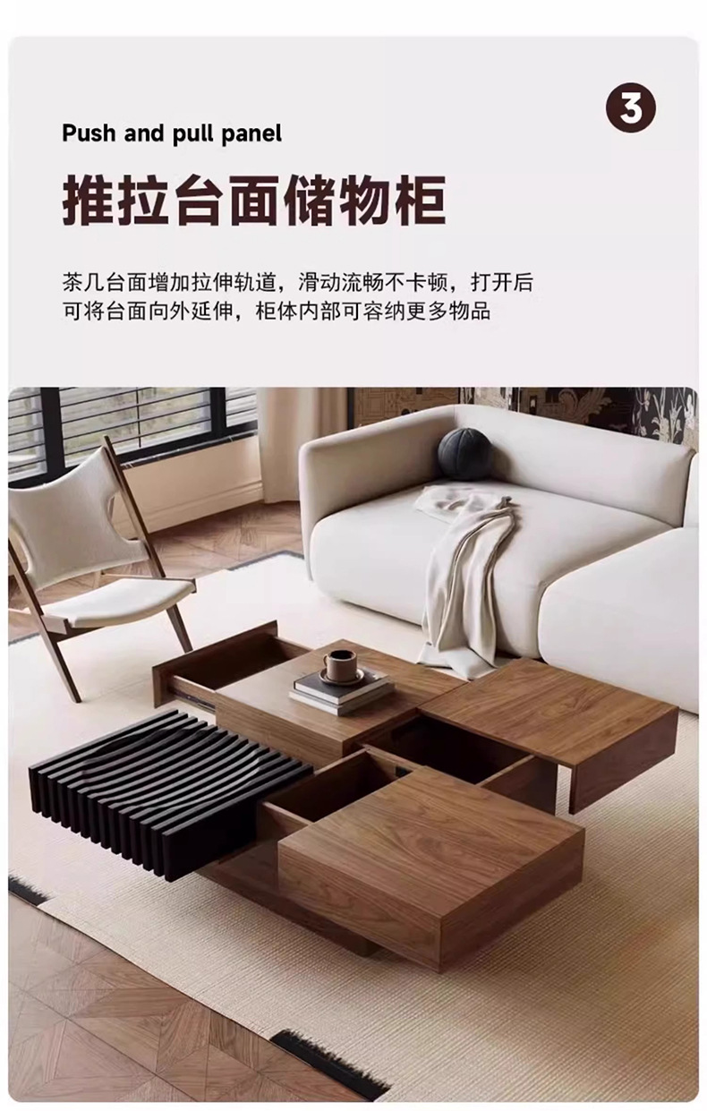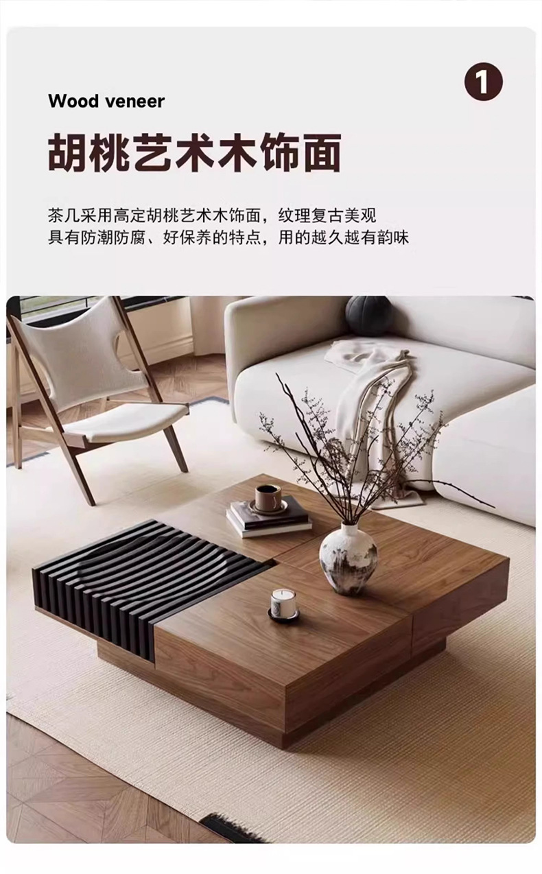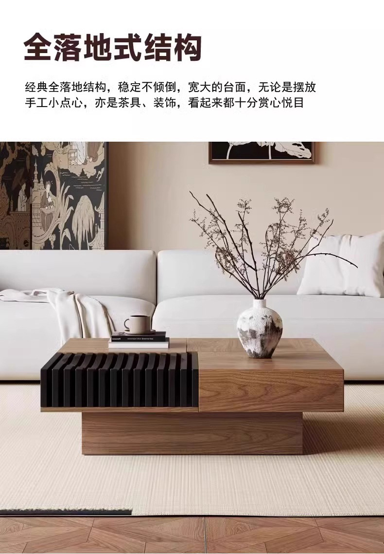 意式极简长方形岩板茶几现代客厅家用岩板伸缩茶几简约储物长茶几