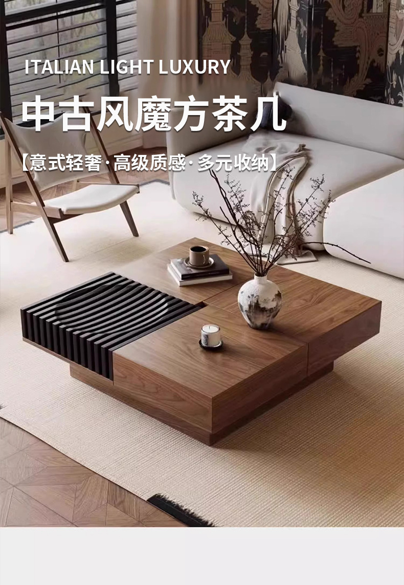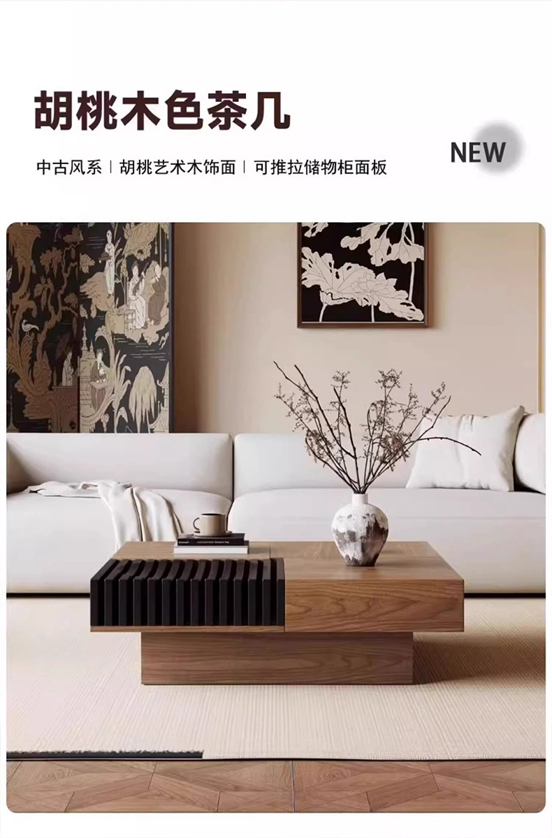 中古风实木方形茶几简约小户型客厅家用极简复古风高级感新款