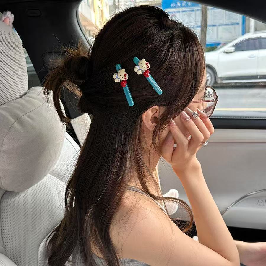 かわいいキティ猫愛ヘアピンサイドクリップサイド前髪ブロークンヘア 2025 新しい女性のヘアピン頭飾りカモノハシクリップ