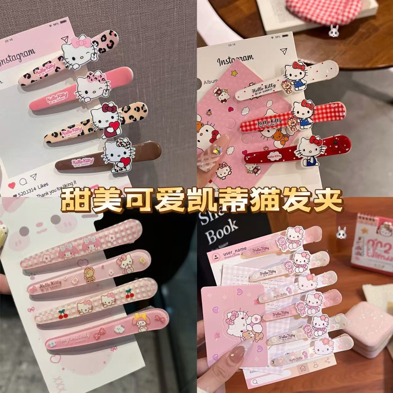 サンリオのケイティ猫insカモの口は前髪の趣味の髪飾りの一字の髪を挟んでかわいいアニメの甘い髪を挟みます。