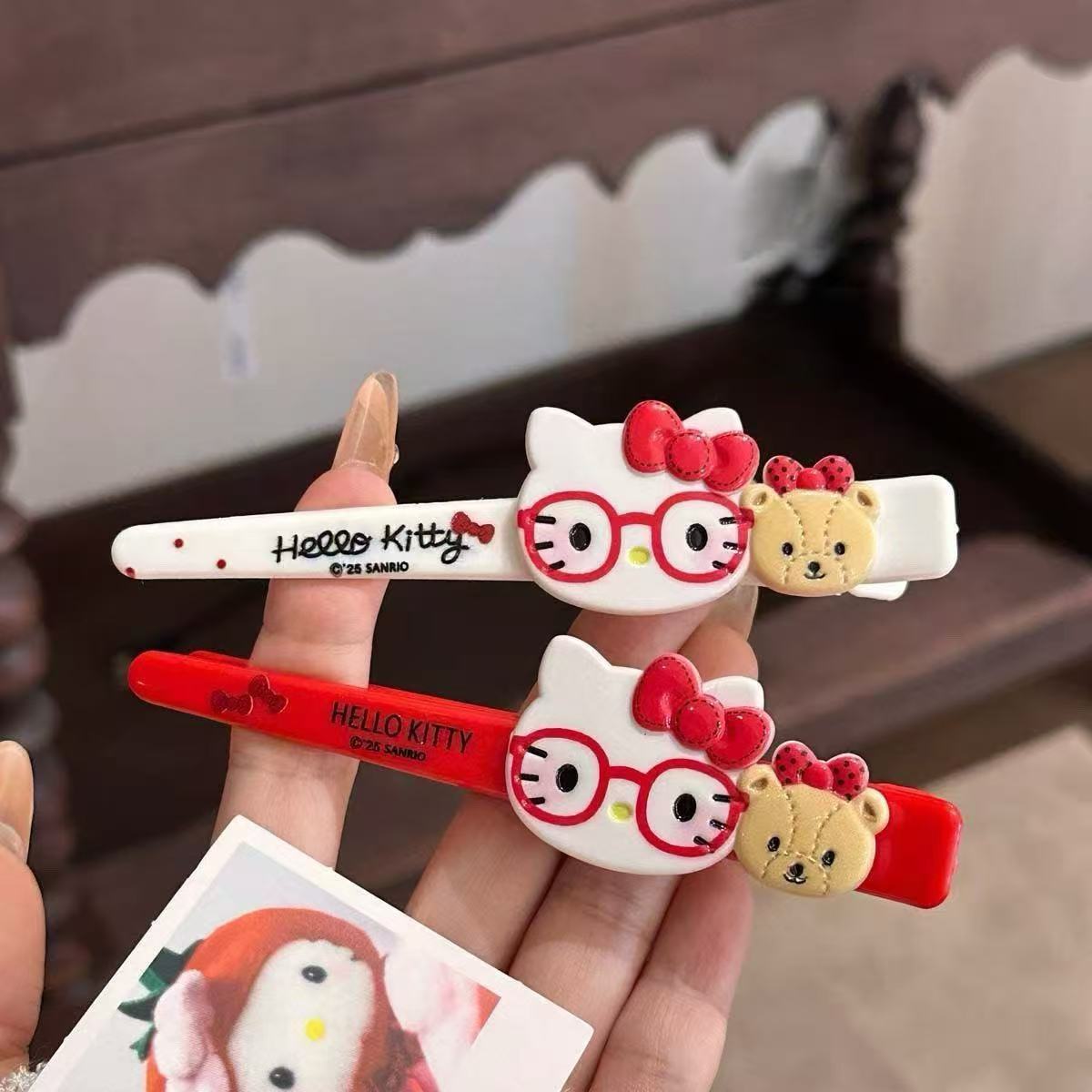 眼镜小熊kt可爱kitty鸭嘴少女可爱卡通发夹大号侧边刘海夹夹子
