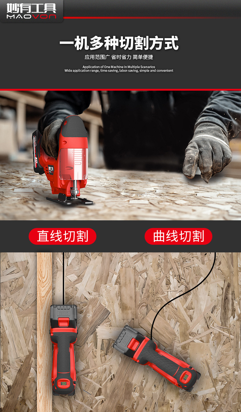 リチウム電気電動ブラシレス曲線鋸多機能家庭用チェーンソー手持ち型線鋸小型切断機木工内装工