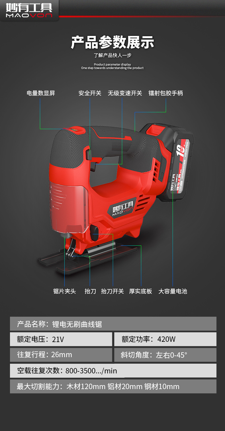国境を越えた外国貿易リチウム電池ブラシレスジグソー家庭用多機能ハンドヘルドジグソー小型切断機木工