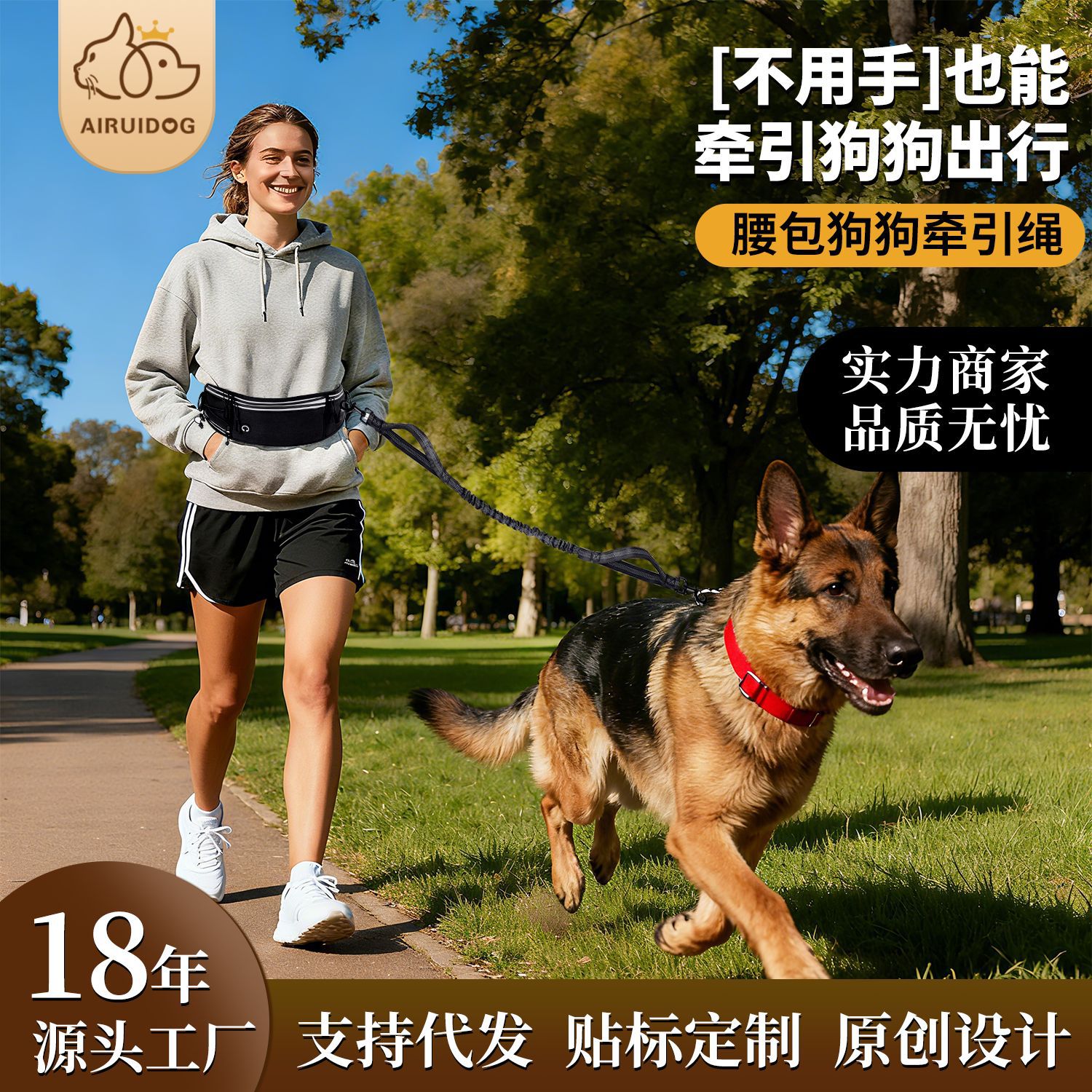 亚马逊热销宠物腰包牵引绳中型犬高弹力狗绳牵引带德牧狗狗牵引绳