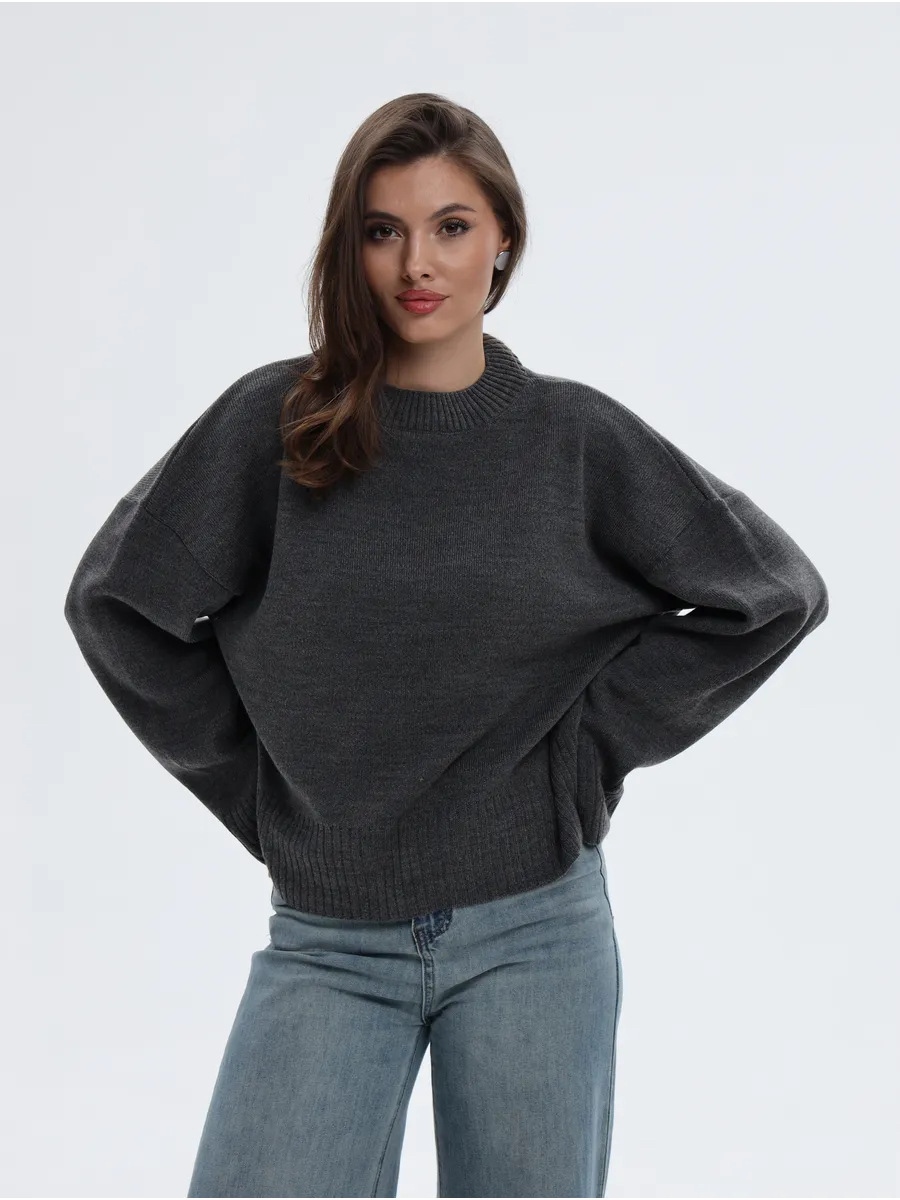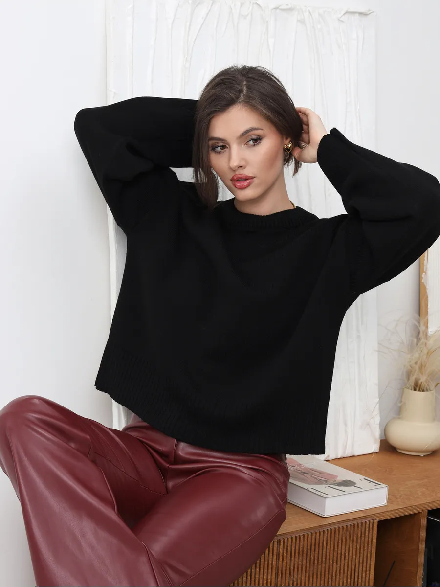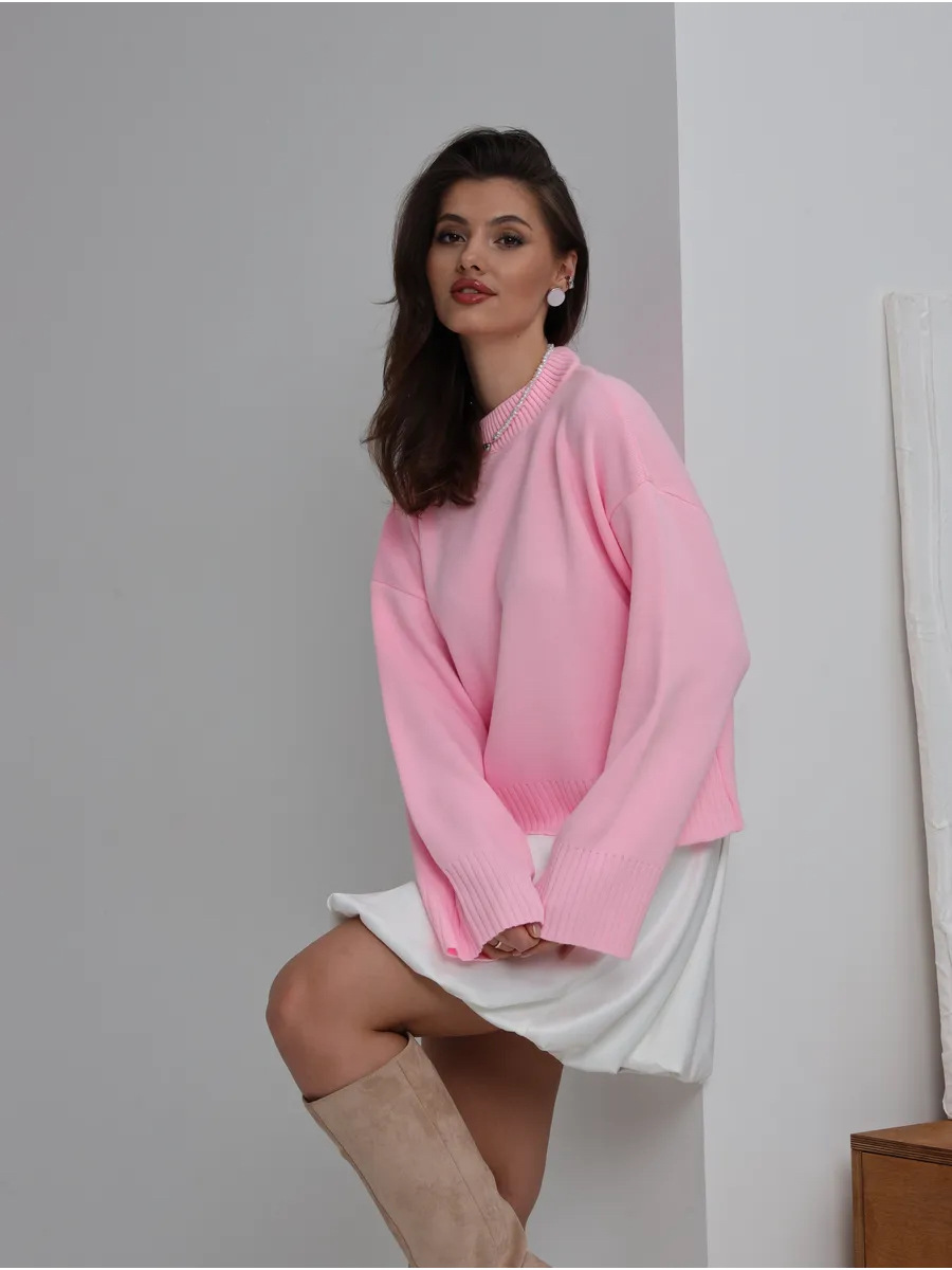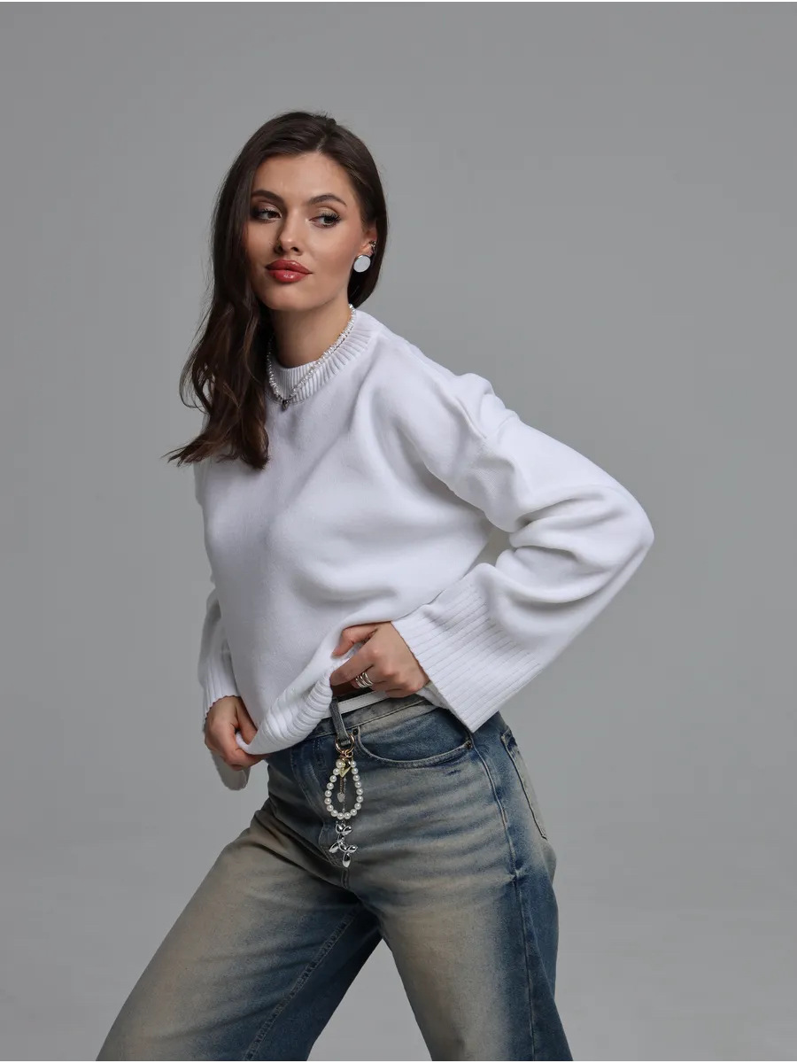 2025跨境宽松欧美慵懒风短款套头毛衣女宽松针织长袖圆领上衣