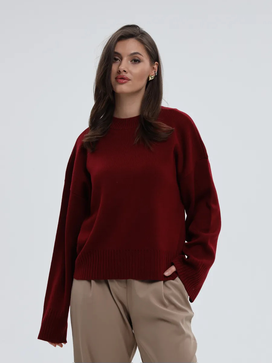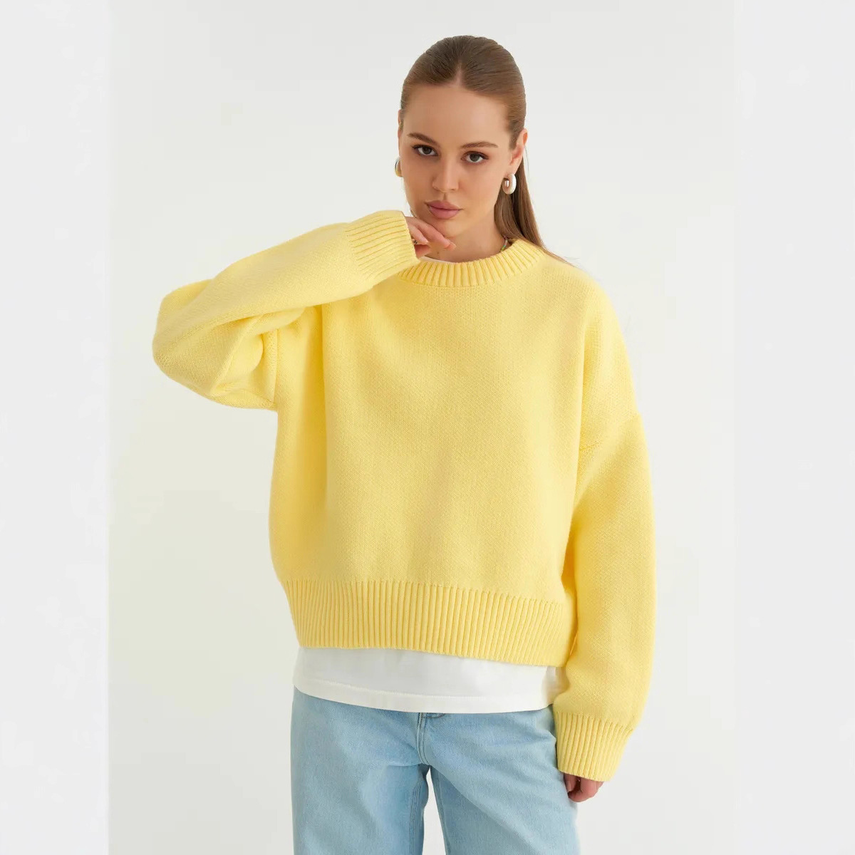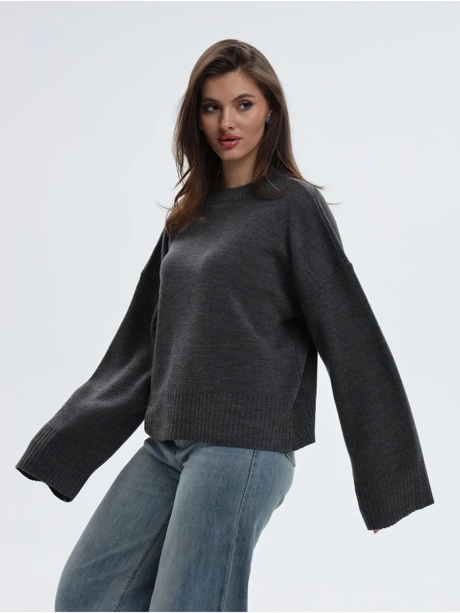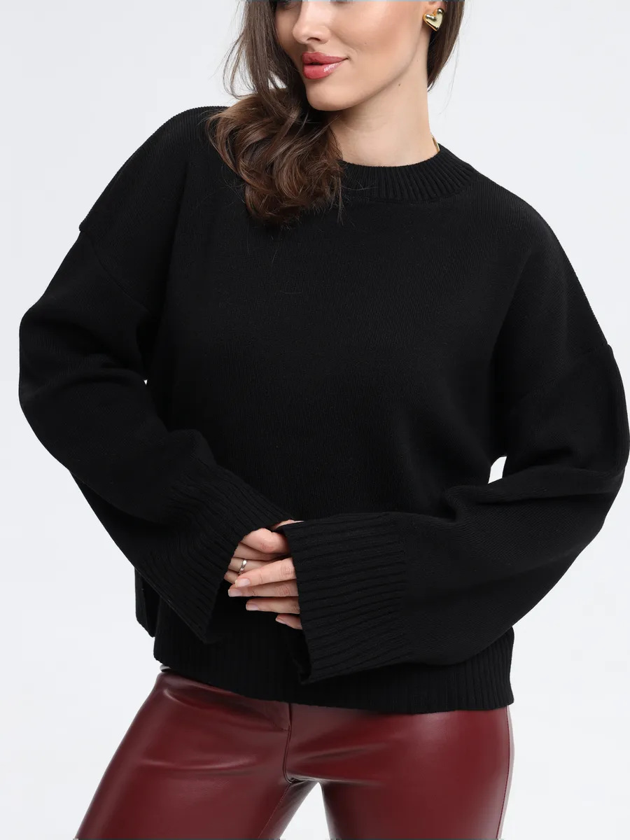 2025跨境宽松欧美慵懒风短款套头毛衣女宽松针织长袖圆领上衣