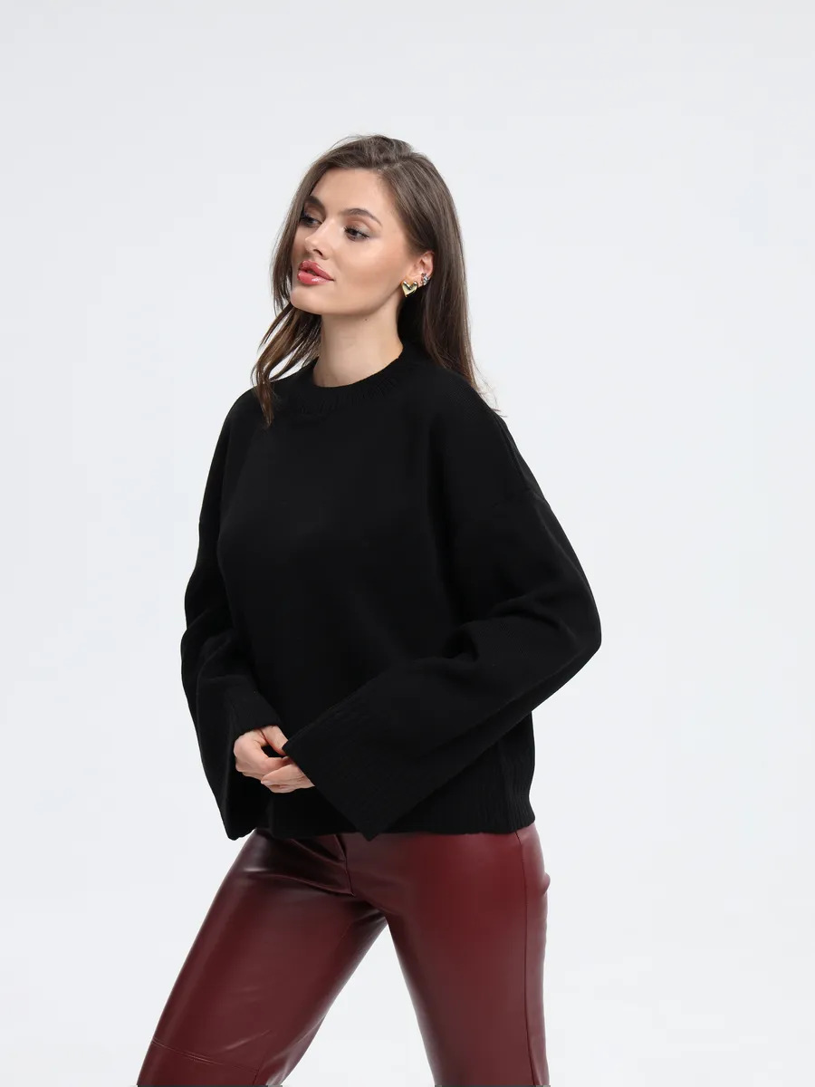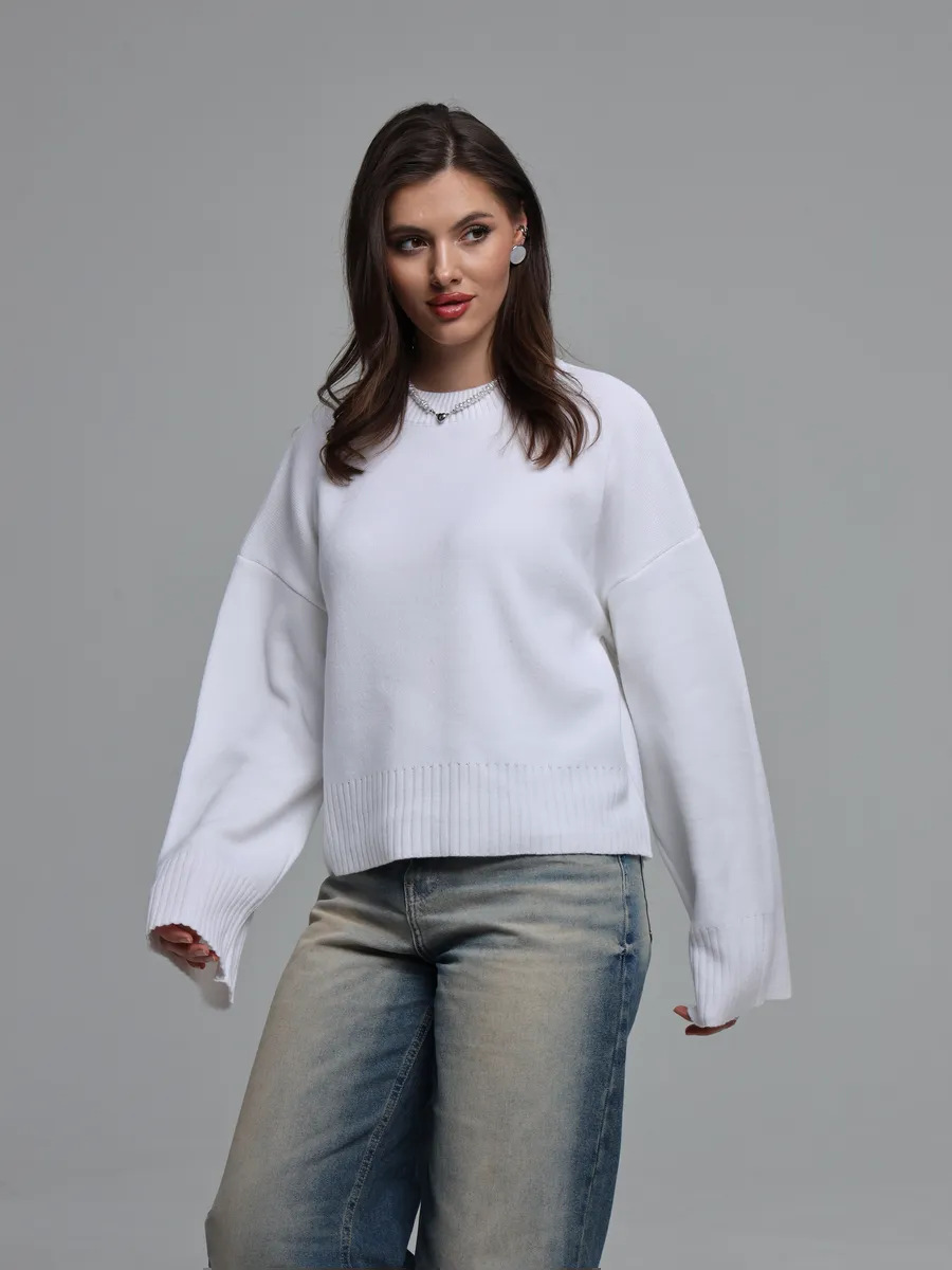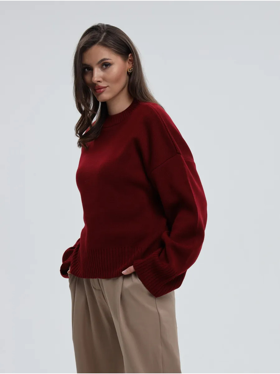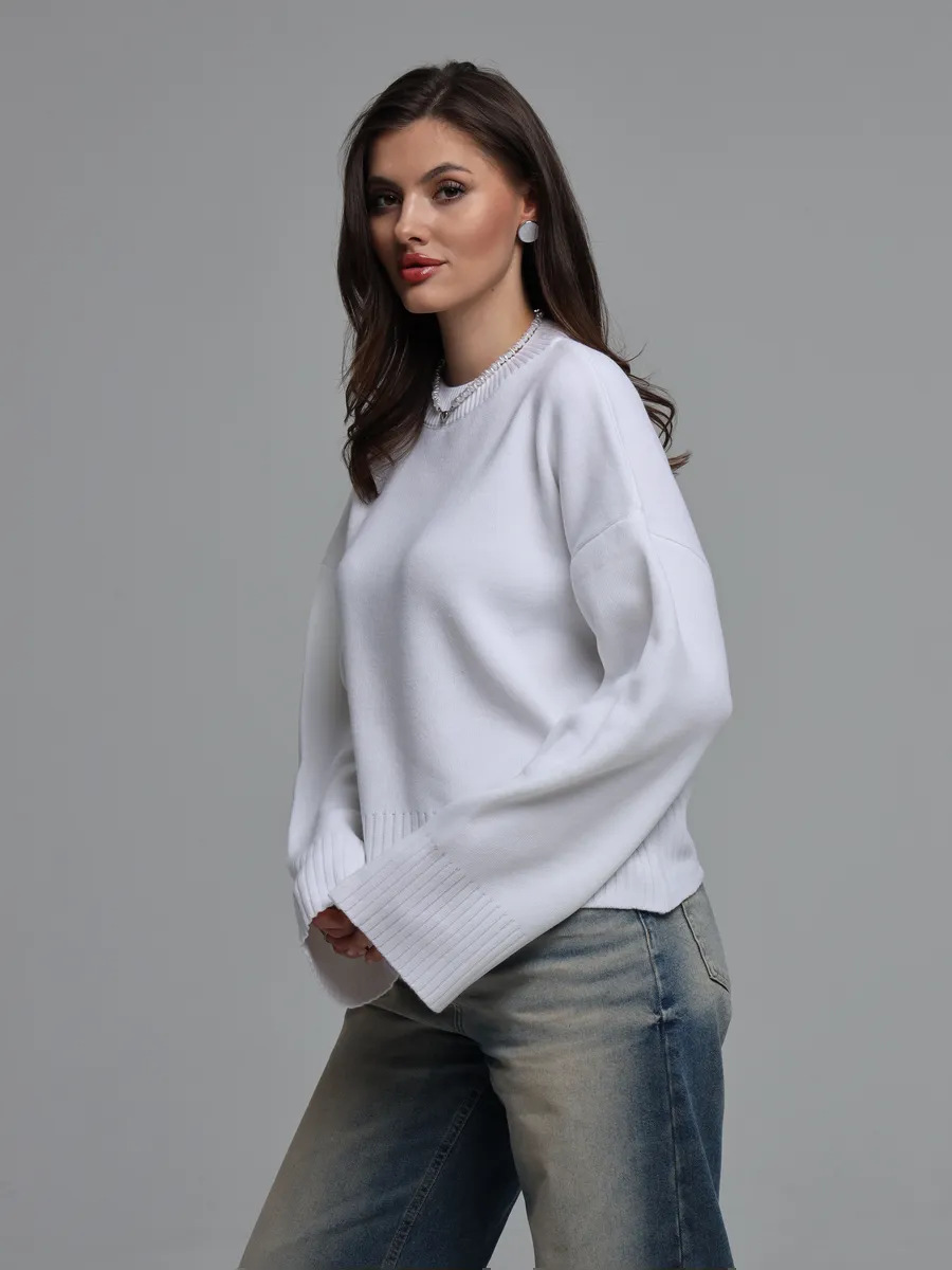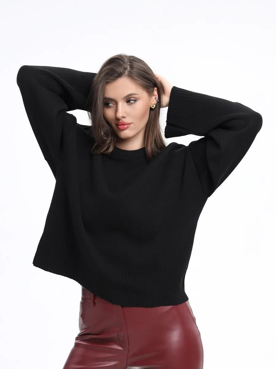 2025跨境宽松欧美慵懒风短款套头毛衣女宽松针织长袖圆领上衣