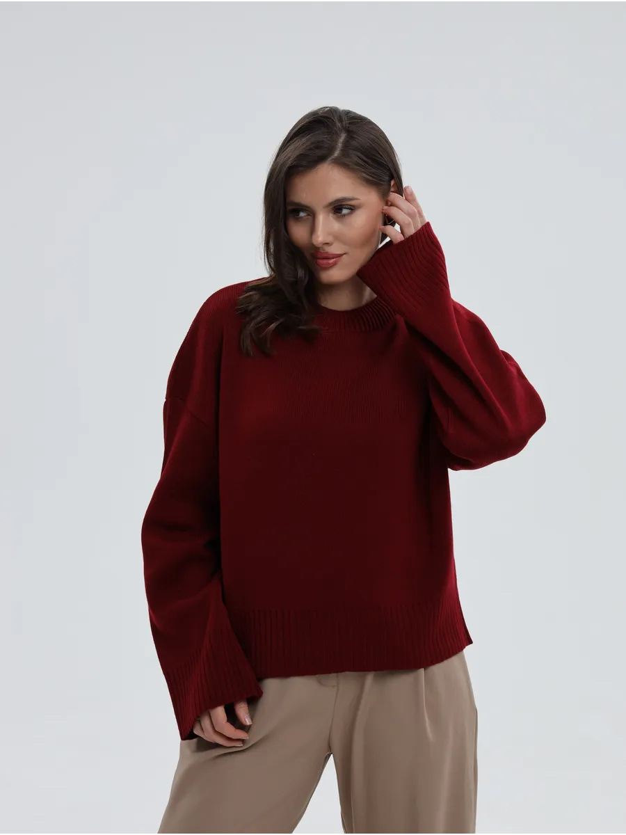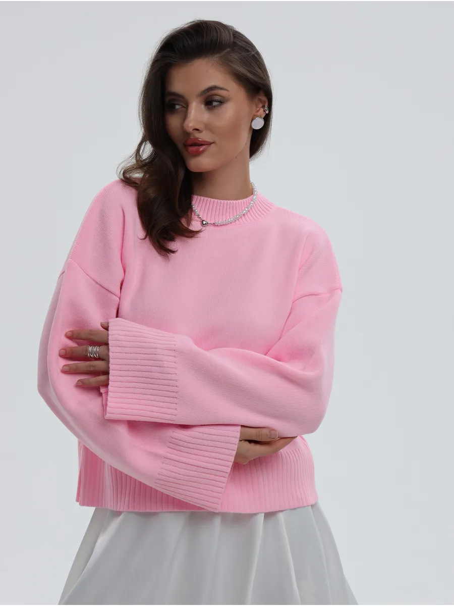 クロスボーダー婦人服ジャケットヨーロッパとアメリカンスタイルのセーター秋と冬の新しいラウンドネックプルオーバールーズ無地長袖セーター女性用